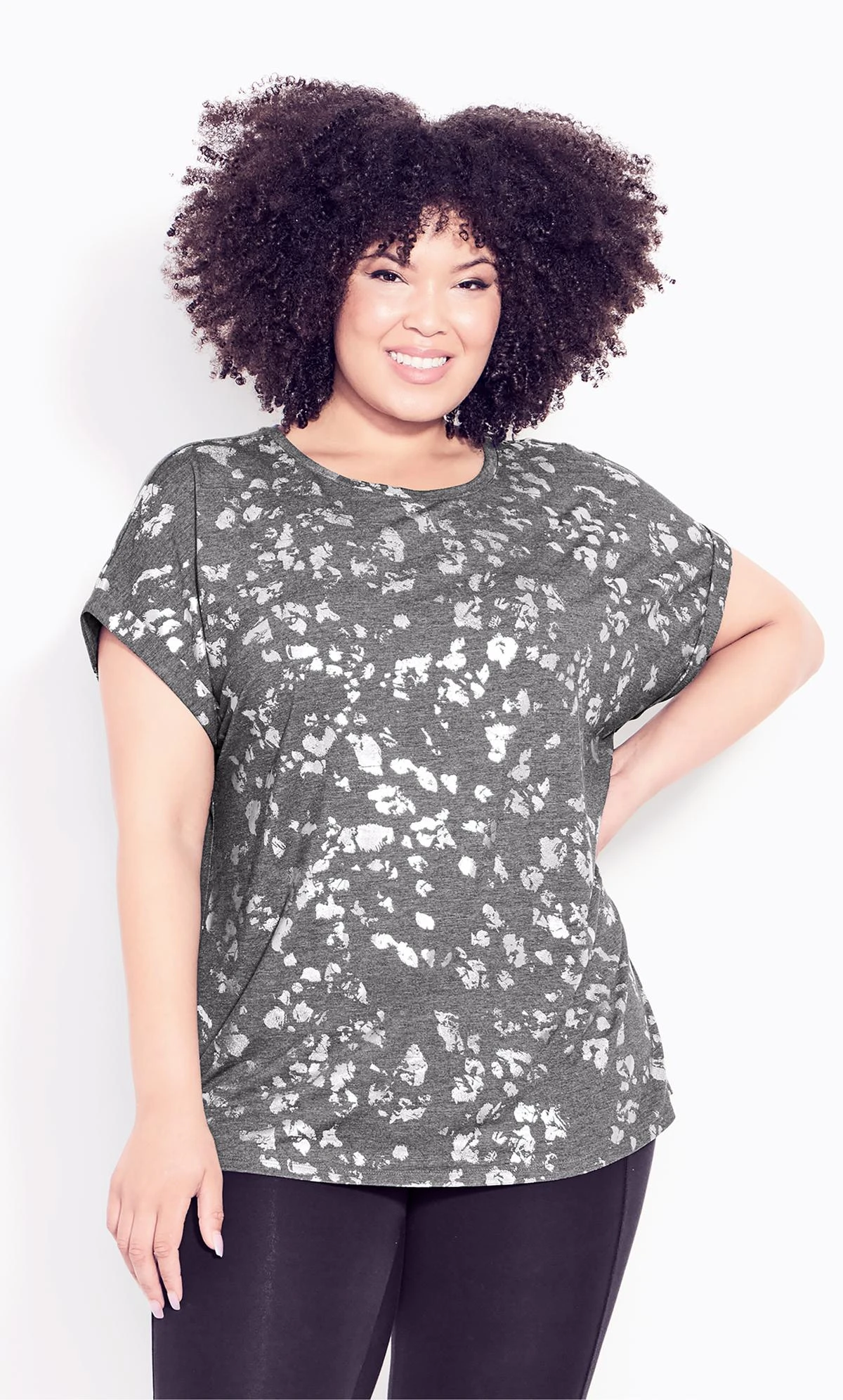 Turn up the charm and feel confident in the Foil Short Sleeve Top! This style draws eyes with its unique foil pattern, while the short sleeves and relaxed fit keep you in easy comfort.