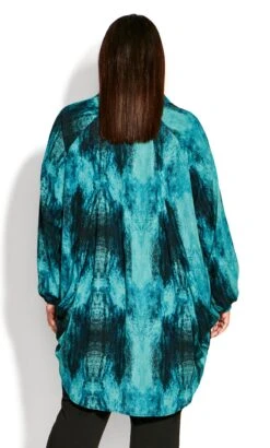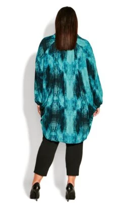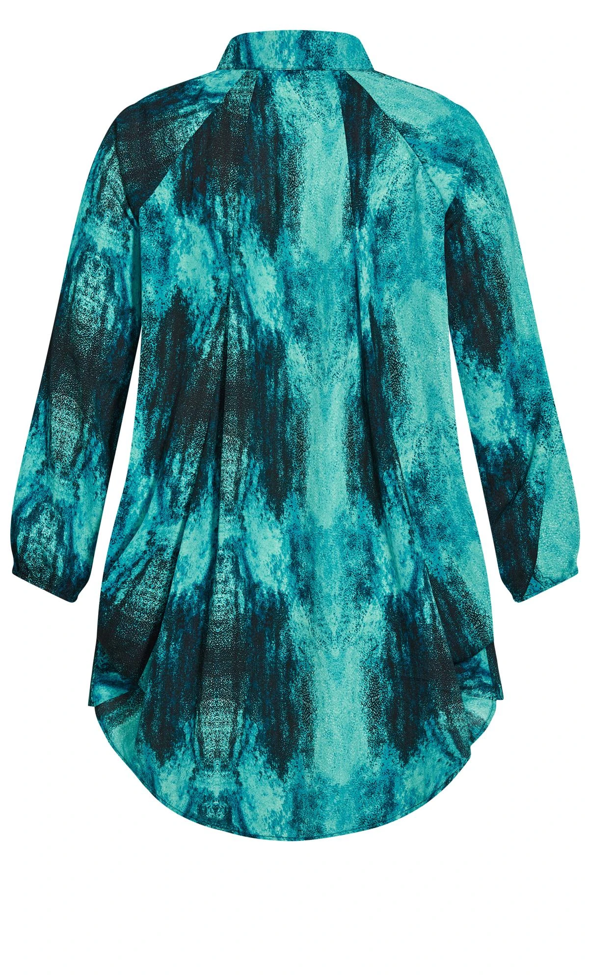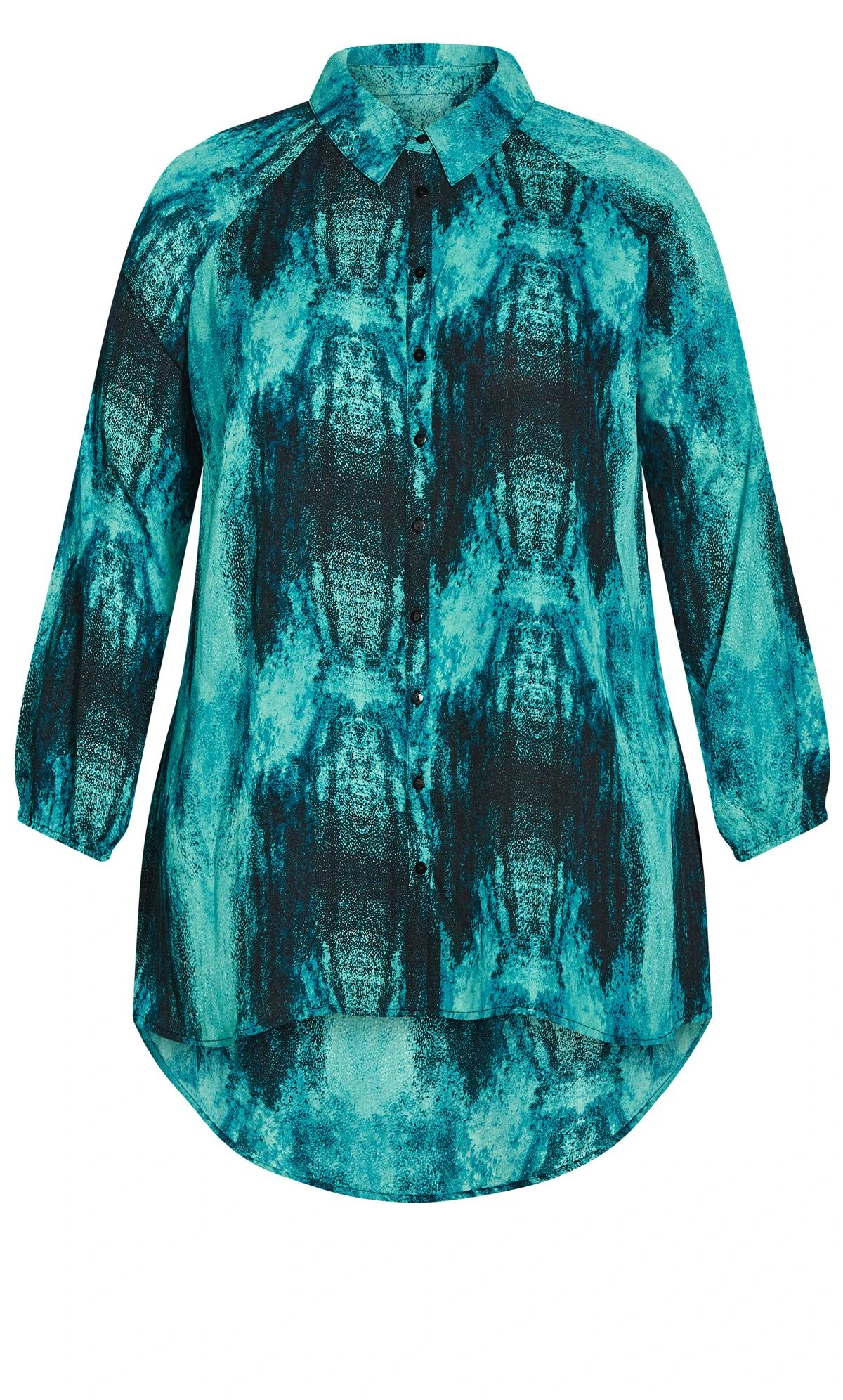 Complete a variety of casual and chic looks with our Speckled Print Shirt! This eye-catching teal hue flaunts a collared neckline and a longline hemline for a curve-flattering look.