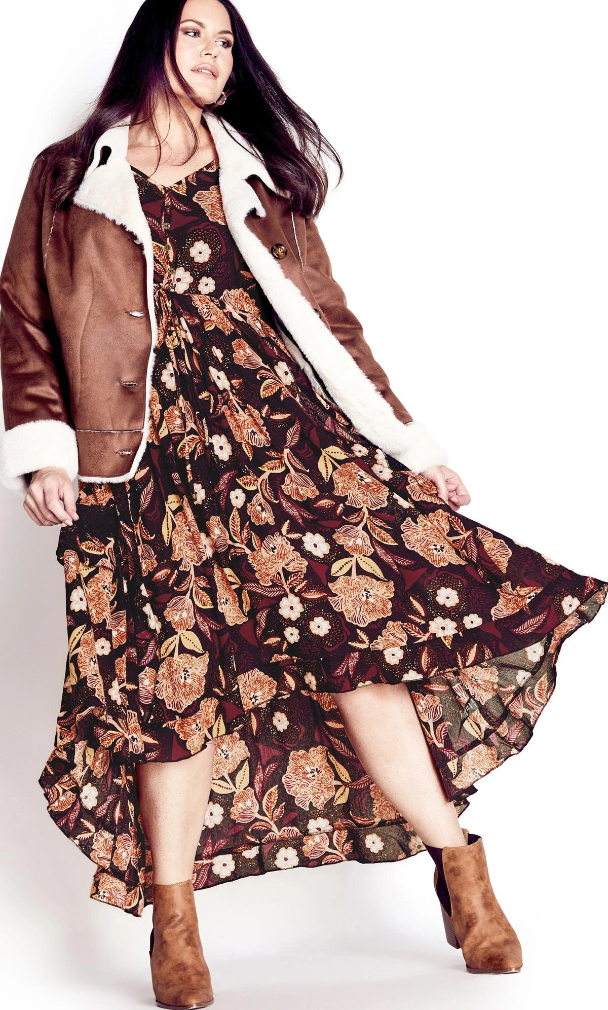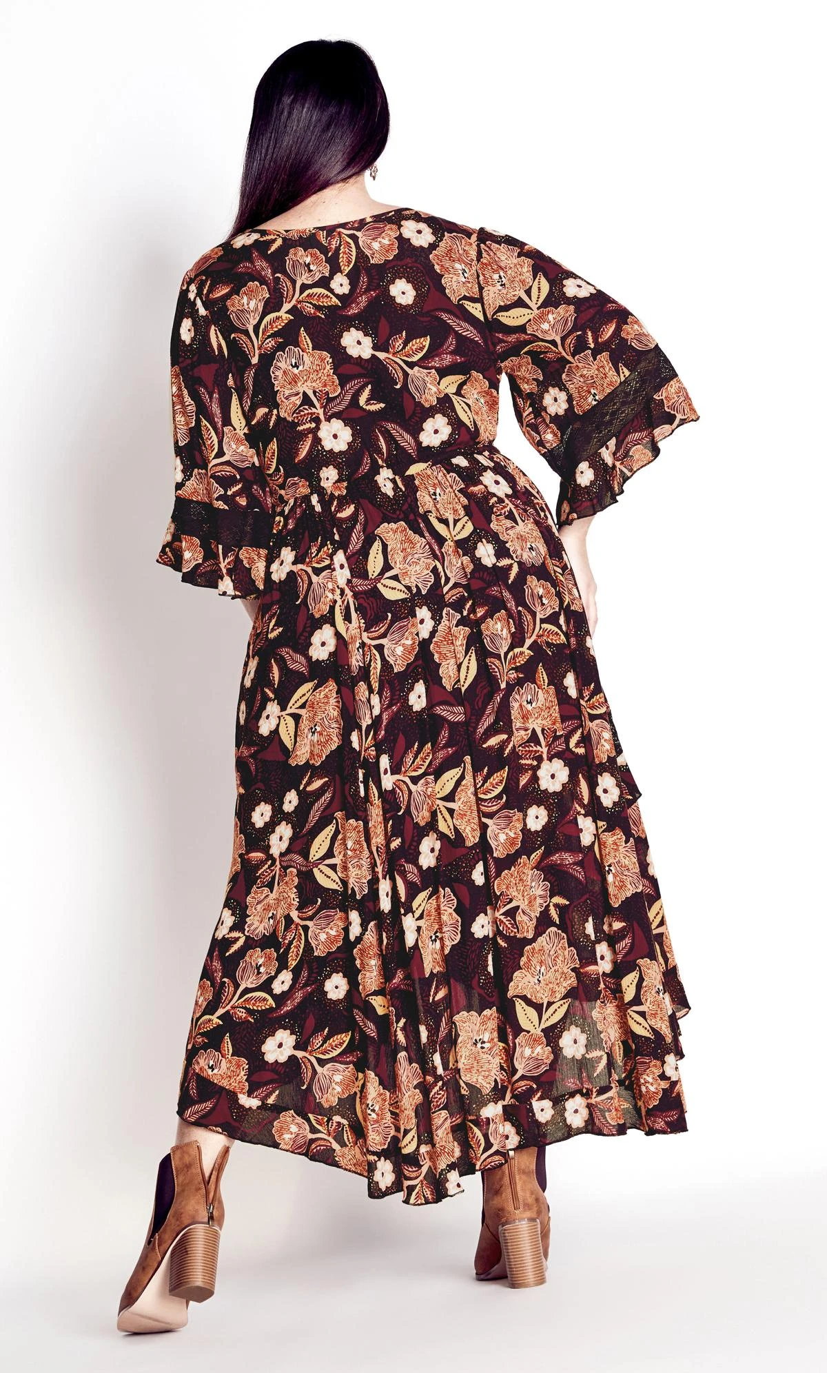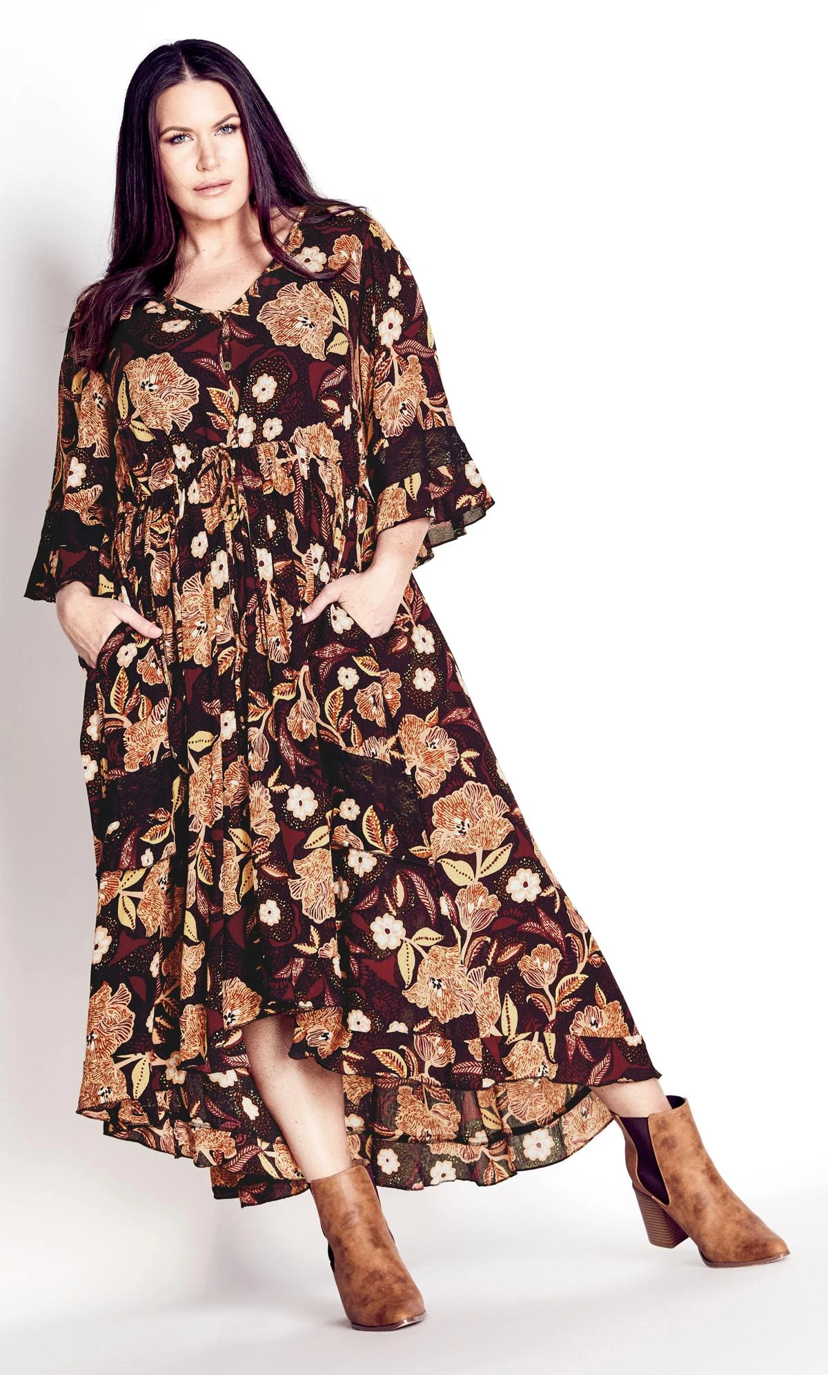 The Aveology Brown Floral Maxi Dress exudes elegance with its captivating blend of rich brown hues and intricate floral patterns. Its flowing maxi length and flattering silhouette make it a versatile choice for both casual outings and special occasions. Crafted with attention to detail, this dress seamlessly combines style and comfort, making it a must-have addition to any fashion-forward wardrobe.