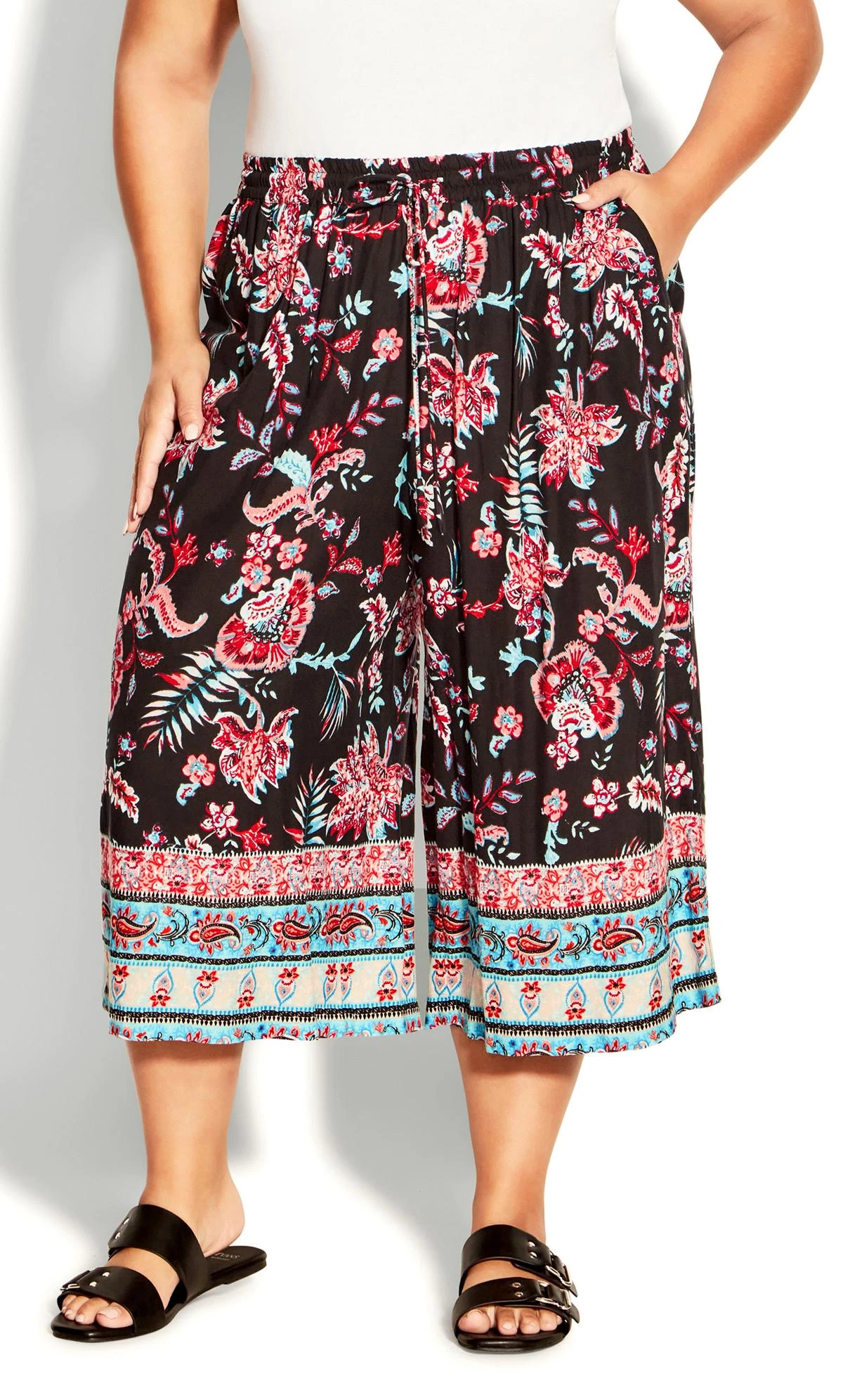 Featuring a stunning pink and black print, the Aurora Border Trouser is sure to become a favourite in your wardrobe. With an elasticated drawstring waistline, side pockets, and a relaxed wide leg cut, this playful style is both comfortable and chic.
