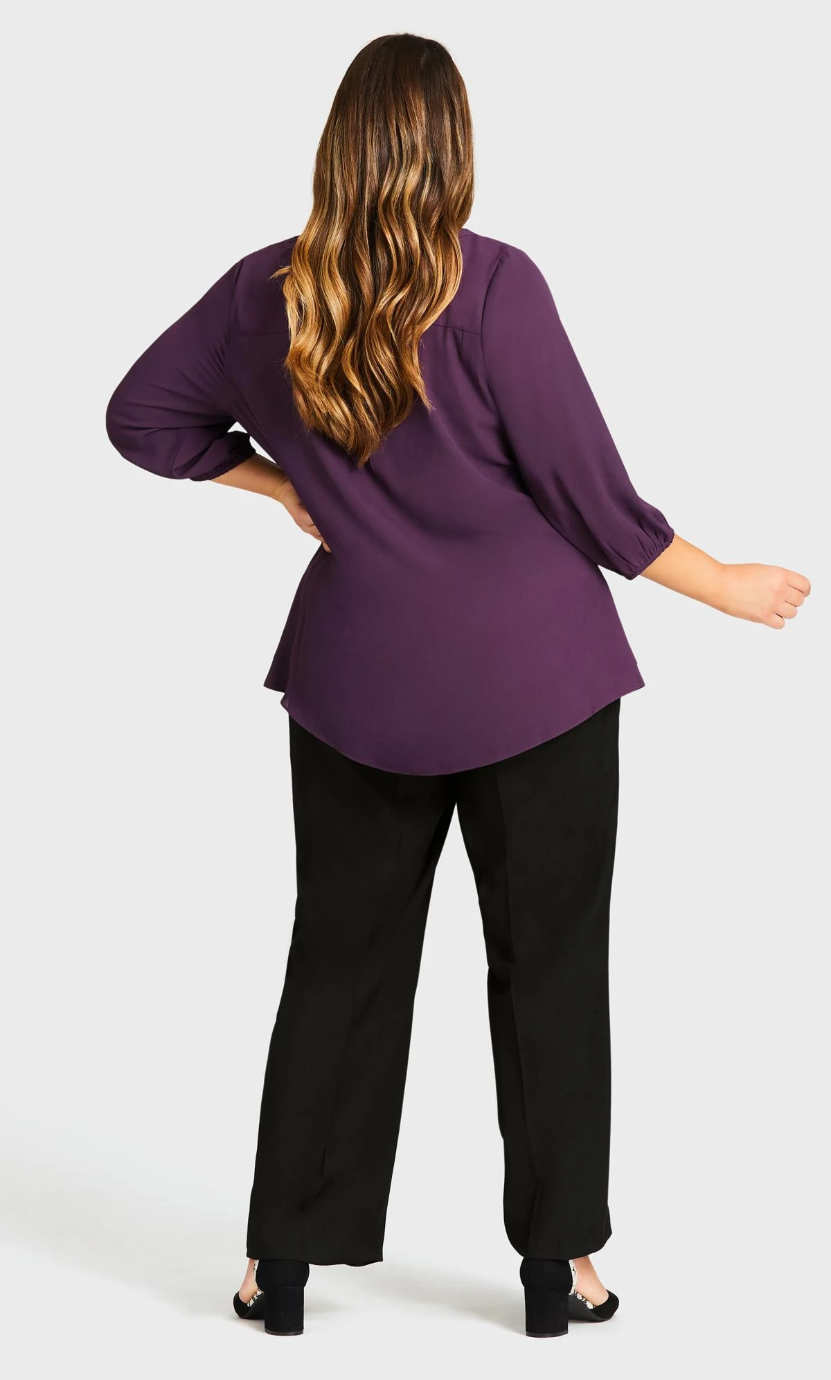 With a simple button up and closed toe heels you’ll be set for the office, but switch it out for a metallic tunic for a night time look.