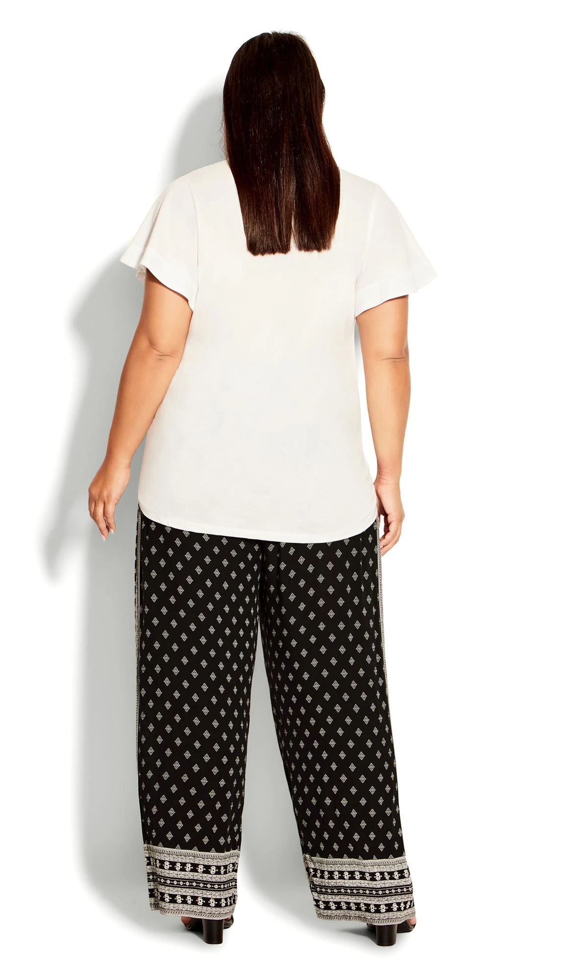 Laidback and stylish, the Escape Border Pant is the dreamy style that’s perfect for your weekends off. The elasticated waist keeps you comfortable all day long while the relaxed silhouette drapes over your figure for a comfortable fit.