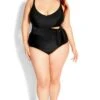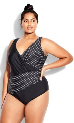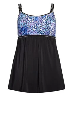 Elevate your beach style with Avenue’s Black & Green Palm Print Swimdress. The captivating palm leaf pattern in black and green infuses tropical charm into your swimwear. With the comfort of a dress and the style of a swimsuit, this swimdress is perfect for a blend of fashion and coverage during your beach or poolside adventures.