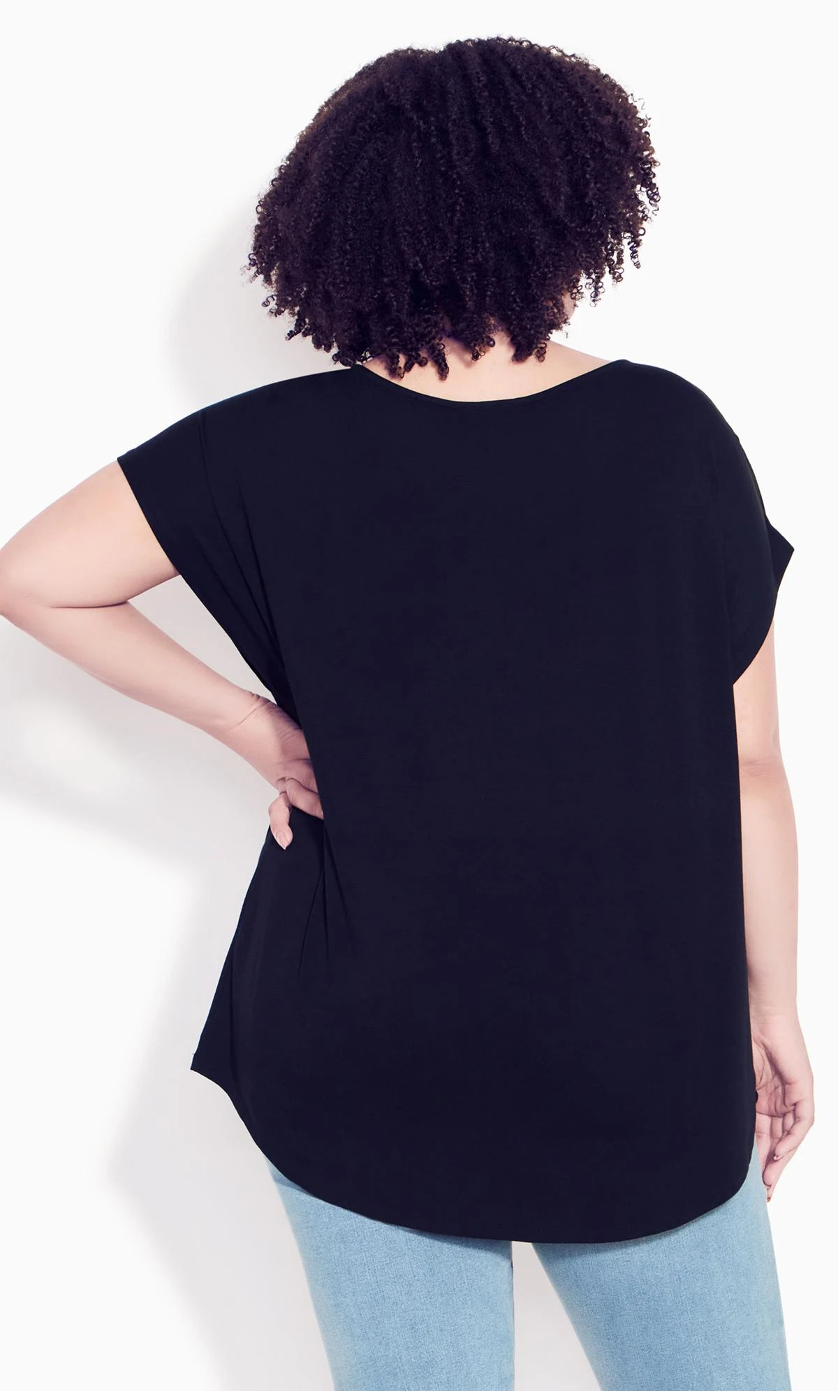 – Wide round neckline