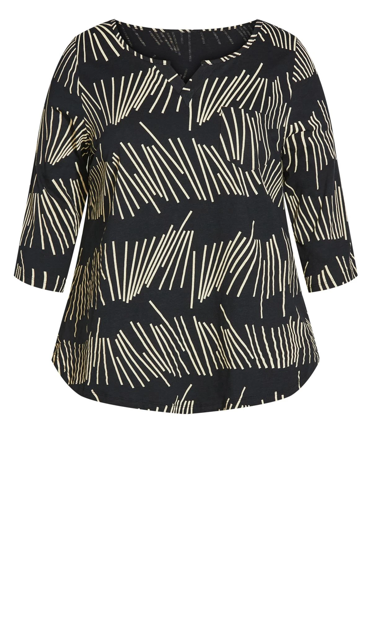 Refresh and renew your off-duty look with the Notch Neck 3/4 Sleeve Print Tee. Elevated with a notch V-neckline and relaxed fit, this ticks all the boxes.