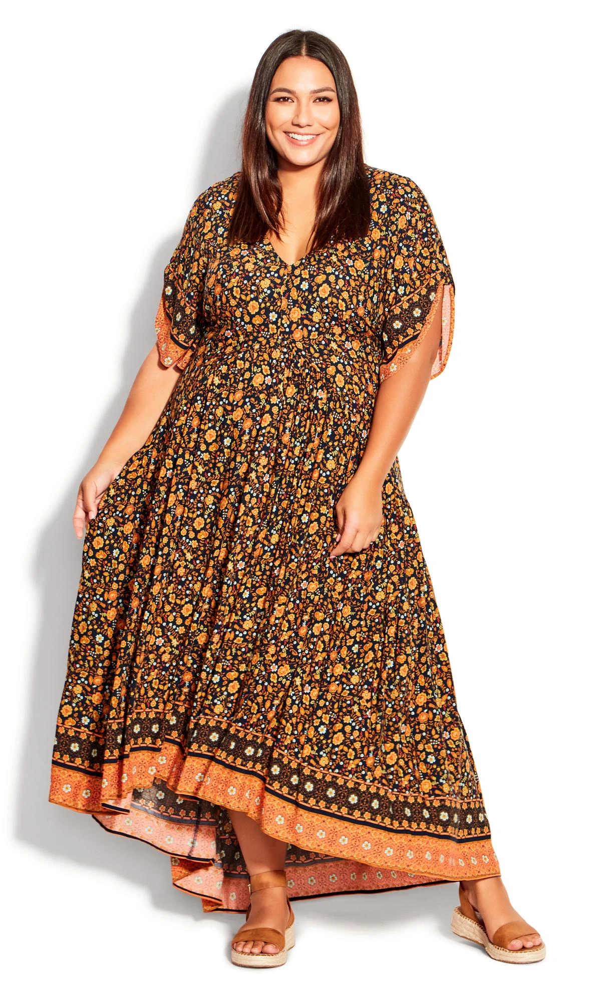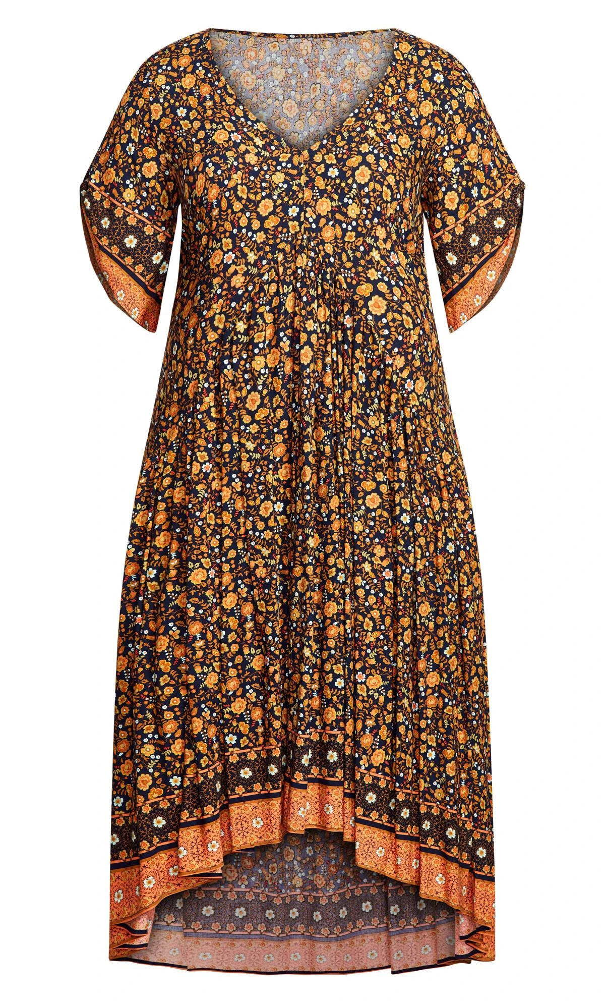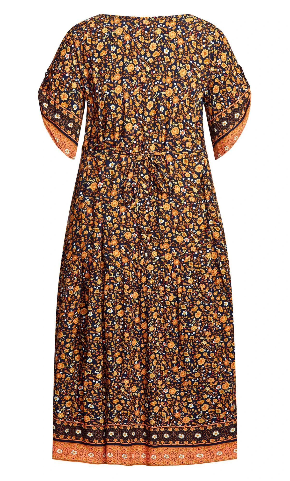 Bloom into gorgeous styling wearing our Val Print Border Dress. With its V-neckline, short button tab flutter sleeves and a self-tie back, this relaxed style adds sophisticated comfort to any occasion.