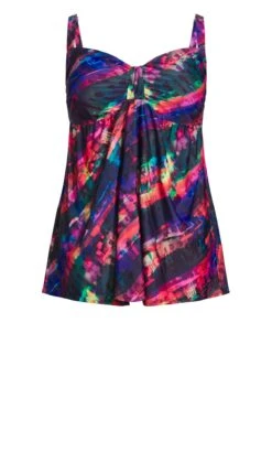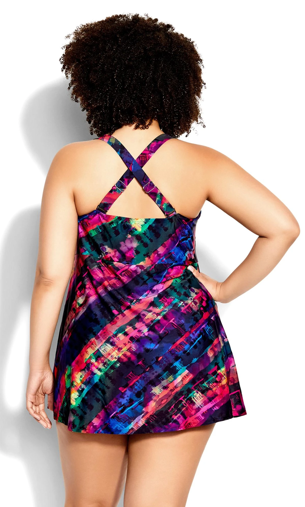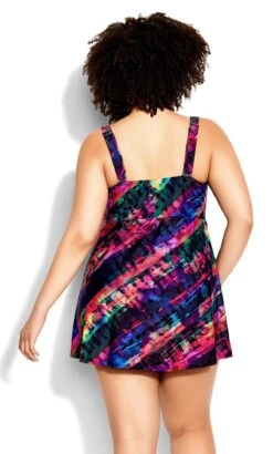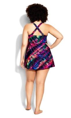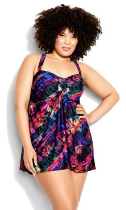 Embrace beachside charm with Avenue’s Black & Red Tie Dye Swimdress. The captivating tie-dye pattern in black and red creates a unique and eye-catching look. With the comfort of a dress and the style of a swimsuit, this swimdress is perfect for those seeking a blend of fashion and coverage during their aquatic adventures.