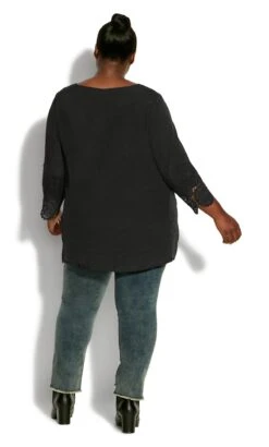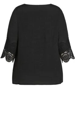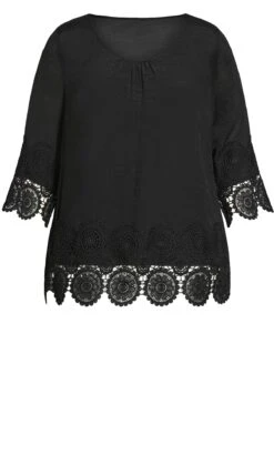– 3/4 length sleeves with crochet lace trim