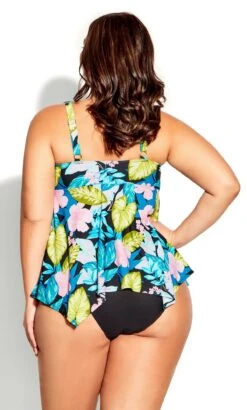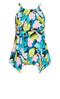 Elevate your beach-ready look with the Avenue Black Tropical Print Halterneck Tankini Top. This tankini top seamlessly blends tropical charm with stylish design, featuring a captivating black backdrop adorned with a vibrant tropical print. The halterneck style adds a touch of sophistication while providing excellent support. Elevate your swimwear collection with this black tropical print halterneck tankini top that effortlessly merges fashion and comfort for a chic poolside statement.
