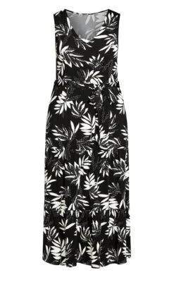 Unveil relaxed elegance with the Evans Black Palm Print Tie Waist Maxi Smock Dress. This dress effortlessly blends comfort and style, boasting a captivating black palm print that evokes a tropical vibe. The tie waist detail adds a flattering silhouette, while the maxi smock design offers a casual yet chic look. From sunny outings to casual evenings, this dress is the epitome of versatile fashion, allowing you to embrace both comfort and trendiness in one striking ensemble.