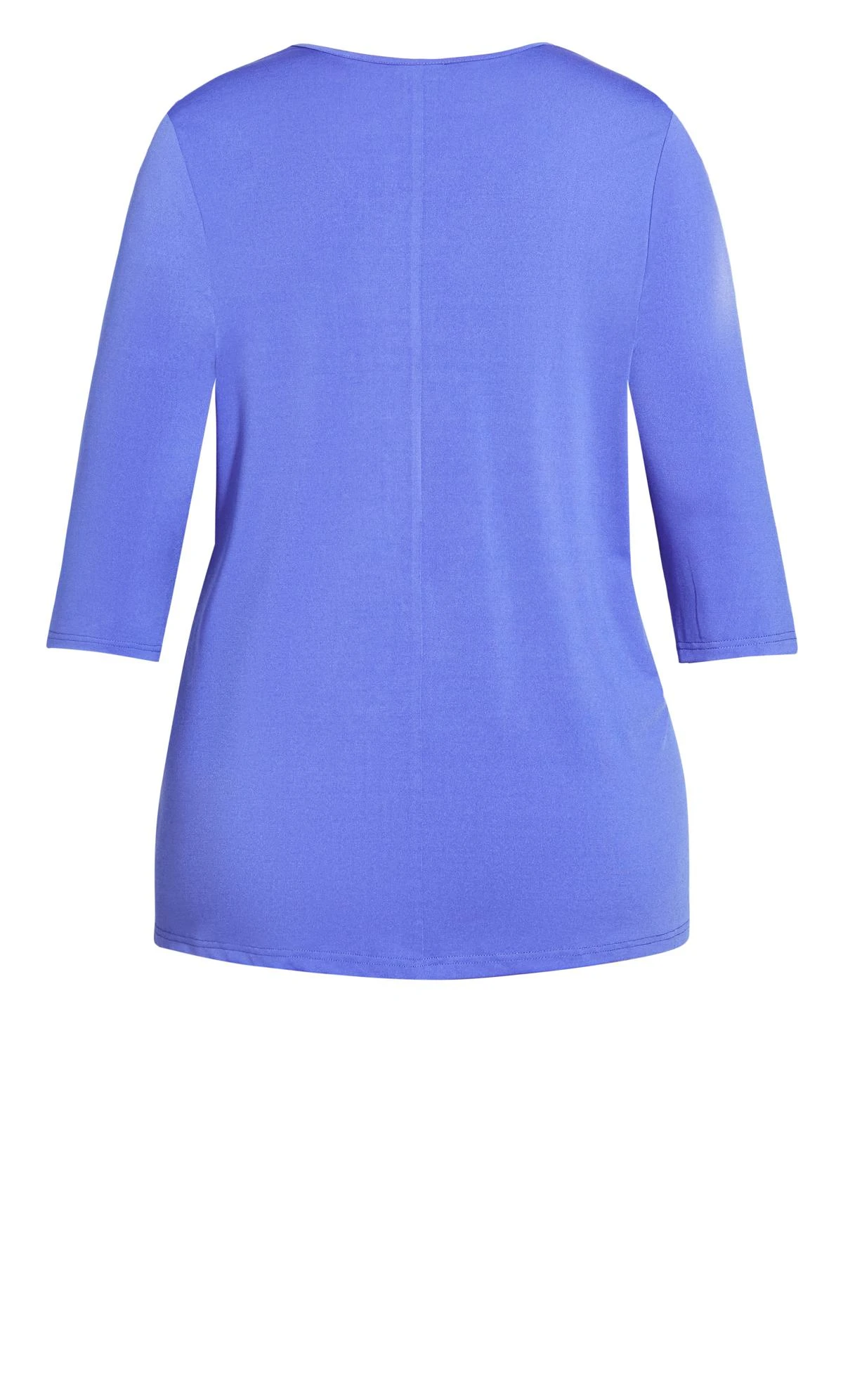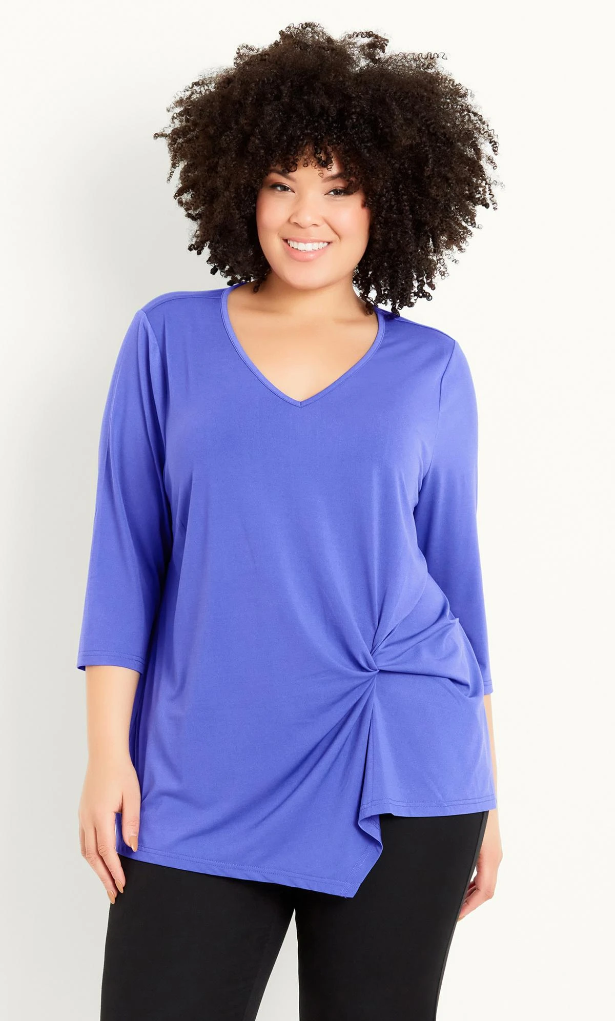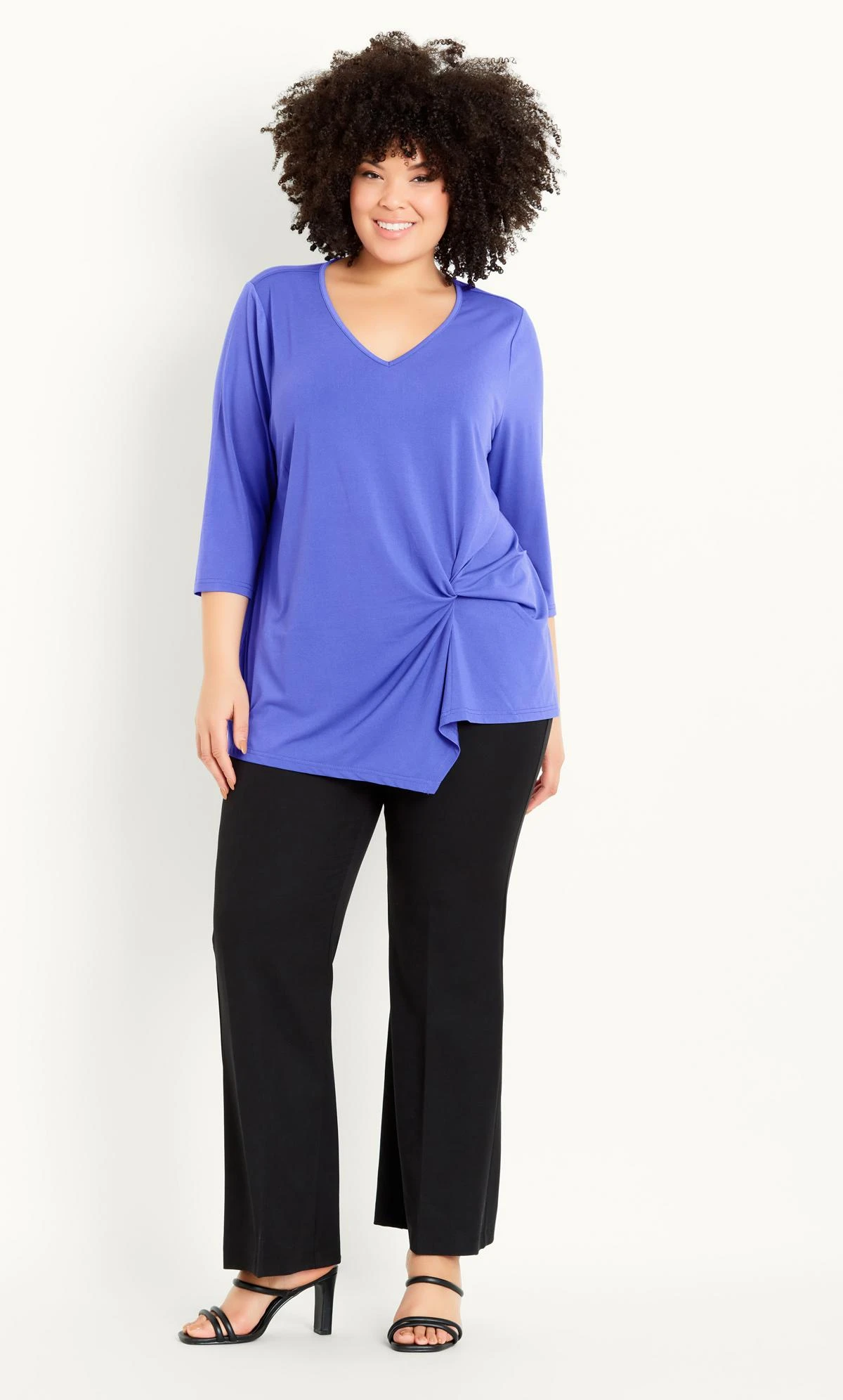 Gorgeous in blue! Our Janis Twist Plain Top is a chic addition to your day-to-day wardrobe, offering a V-neckline and three-quarter sleeves. With a stylish knot detail to the front and comfortable relaxed fit, you can style this top from desk to dinner with ease.