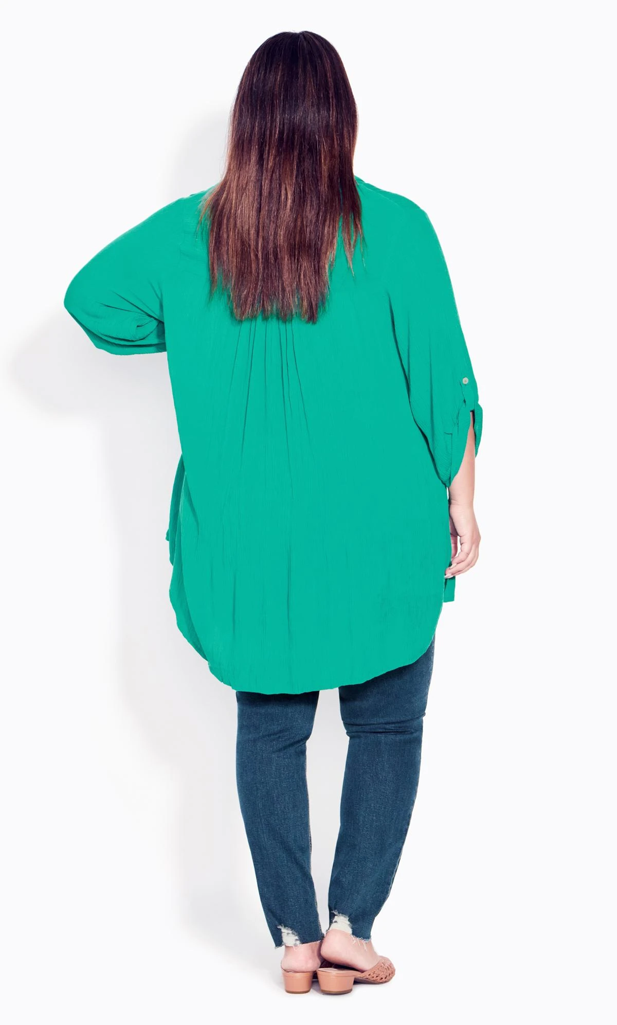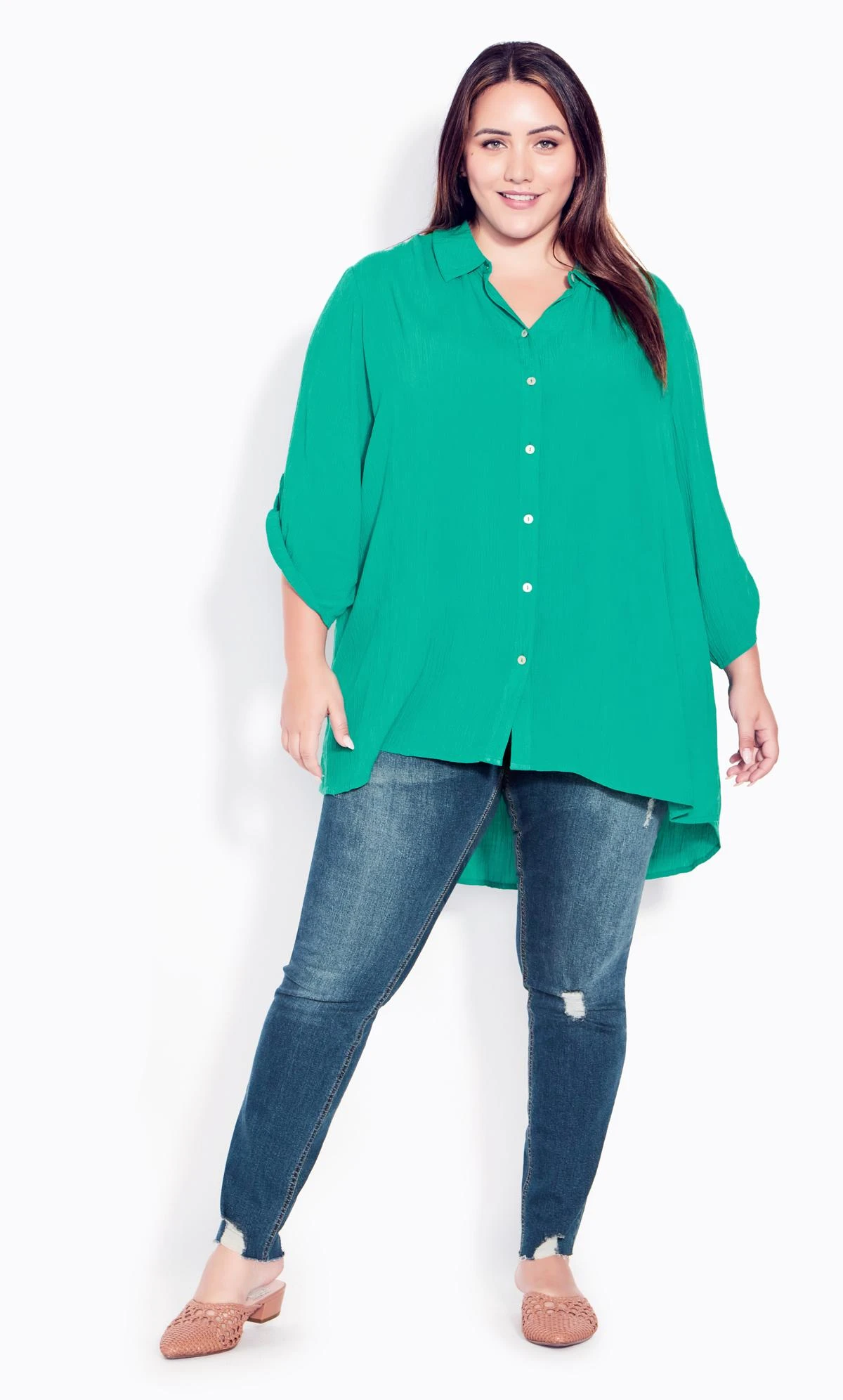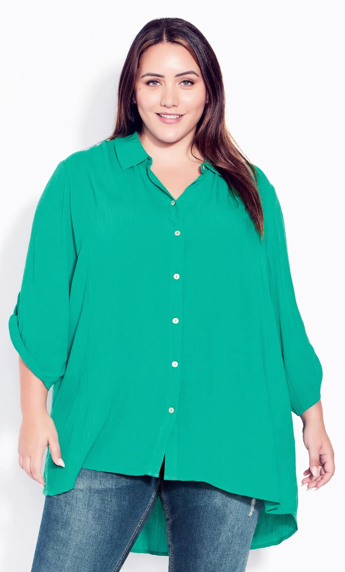 Revitalize your style with the Evans Turquoise Green Button Through Shirt. The vibrant hue and modern button-through design make it versatile for work or casual occasions. Elevate your wardrobe with this statement piece.