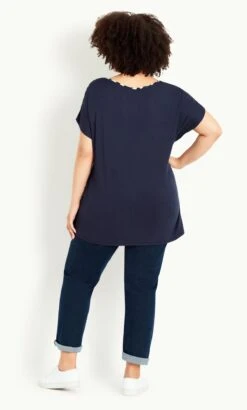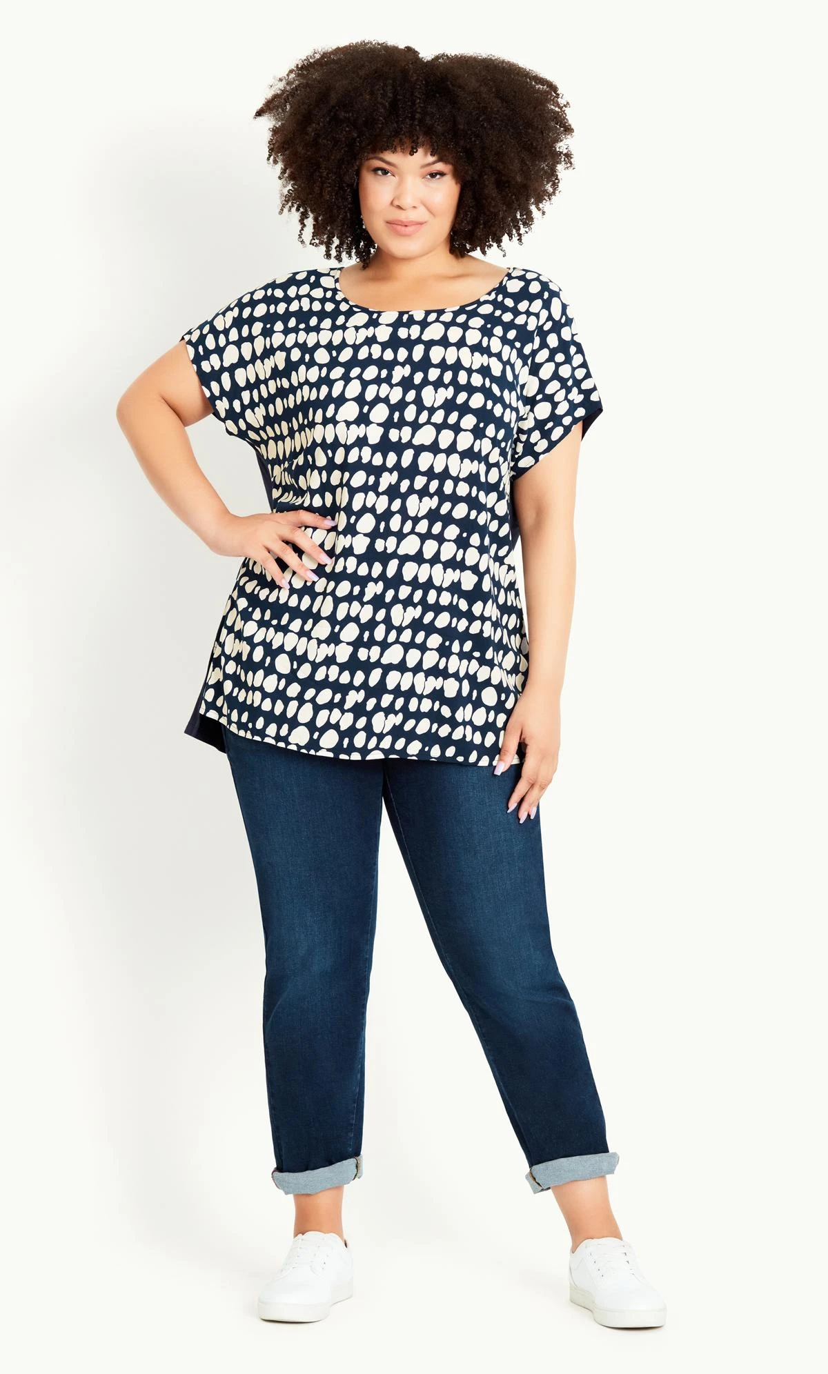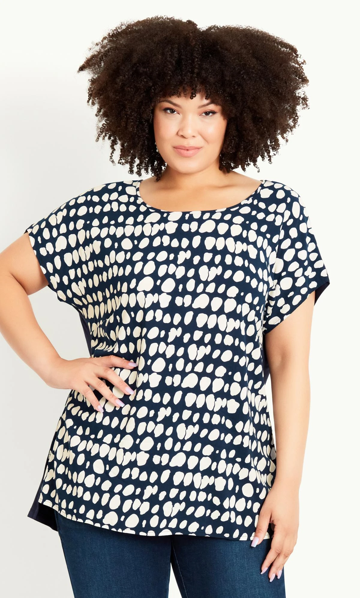 Elevate your casual look with the Evans Navy Spot Boxy T-shirt. Adorned with charming navy spots, this top offers a playful yet versatile style. The boxy fit ensures comfort, while the classic round neck adds a timeless touch. Perfect for everyday wear, this t-shirt effortlessly combines comfort and chic, making it a must-have addition to your wardrobe. Embrace the charm of polka dots and express your individuality with this piece, designed to capture attention and radiate confidence in your fashion choices.