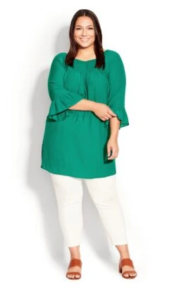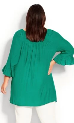 The Flutter 3/4 Sleeve Top is perfect for your off-duty style. This casual top features an on/off shoulder neckline and a relaxed fit, plus 3/4 length sleeves with flutter cuffs. The gather detail at the bust gives this top a feminine touch, while the curved hemline flatters your hips.