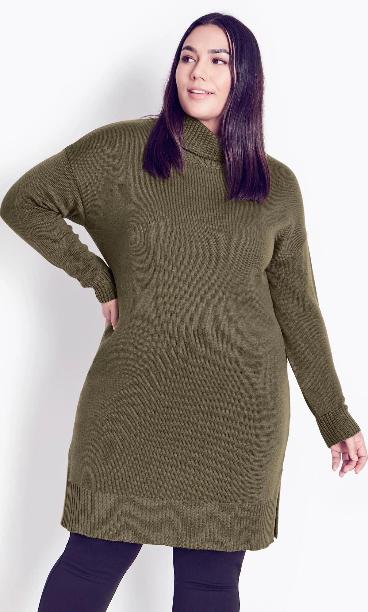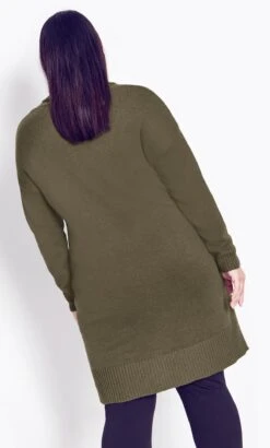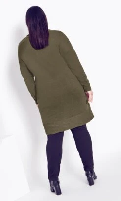 Elevate your winter wardrobe with the Avenue Khaki Green Knitted Roll Neck Jumper Dress. This dress offers both warmth and style, featuring a cozy knitted texture and a classic roll neck design in a stylish khaki green shade. Versatile and comfortable, it’s a must-have piece for effortlessly chic cold-weather outfits, allowing you to showcase your fashion sense while staying cozy.