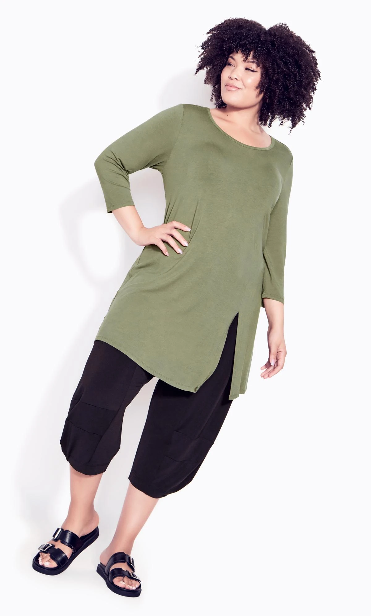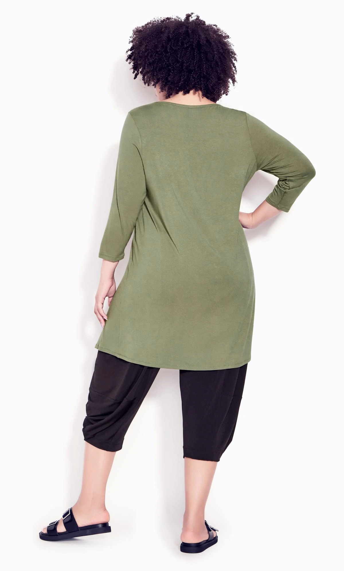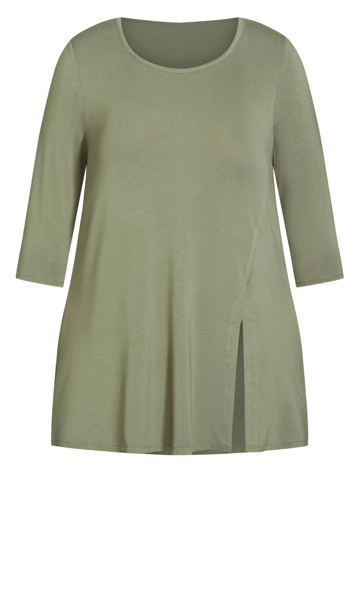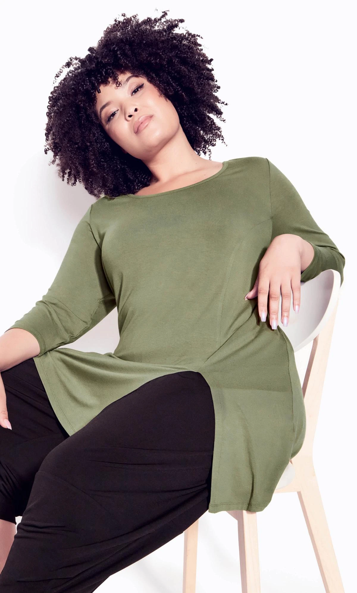 Elevate your wardrobe with the Avenue Khaki Green Split Front Long Sleeve Top. This versatile top features a stylish khaki green hue and a contemporary split front design, adding a touch of sophistication to your ensemble. Whether paired with jeans for a casual day out or dressed up for an evening event, the Avenue Khaki Green Split Front Long Sleeve Top offers a trendy and versatile option for any occasion.