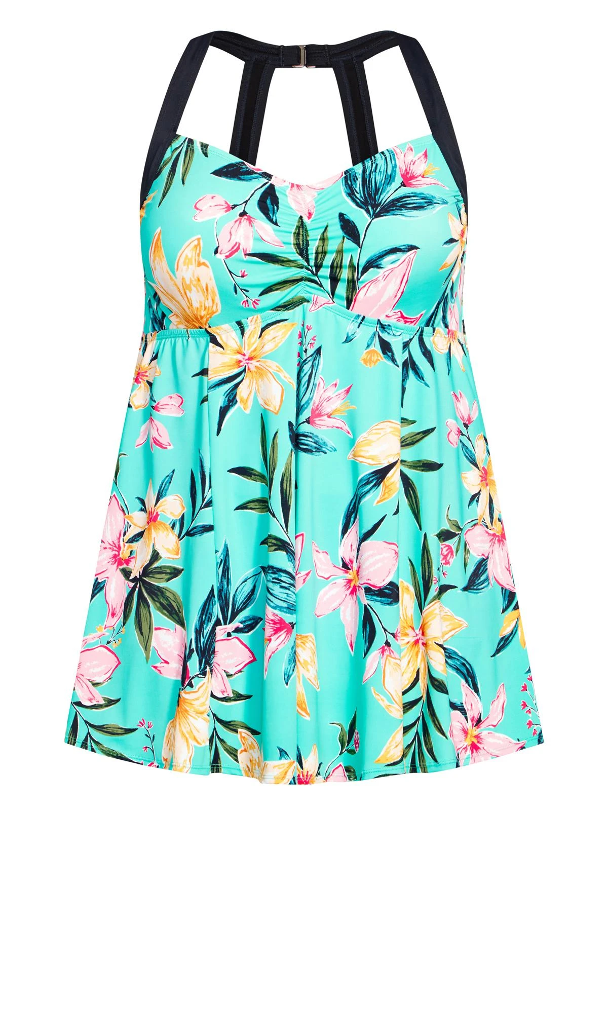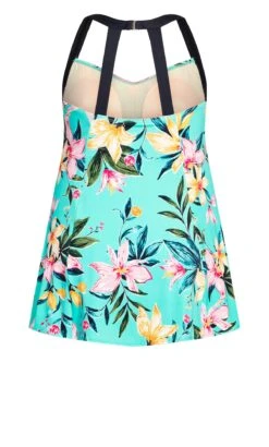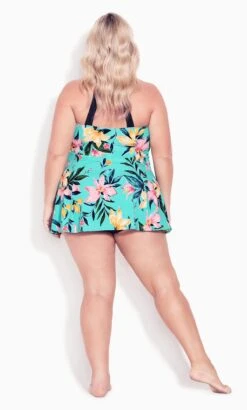 Elevate your beach look with Avenue’s Blue Tropical Print Swim Dress. This swim dress effortlessly combines style and comfort, featuring a captivating tropical print in a light blue hue. Embrace both elegance and ease for your next beach day.