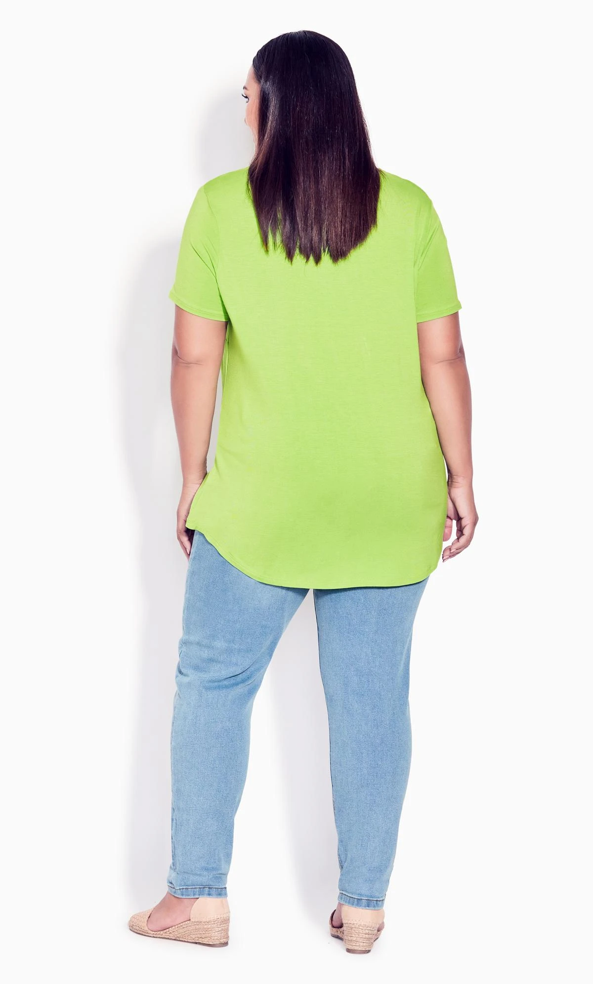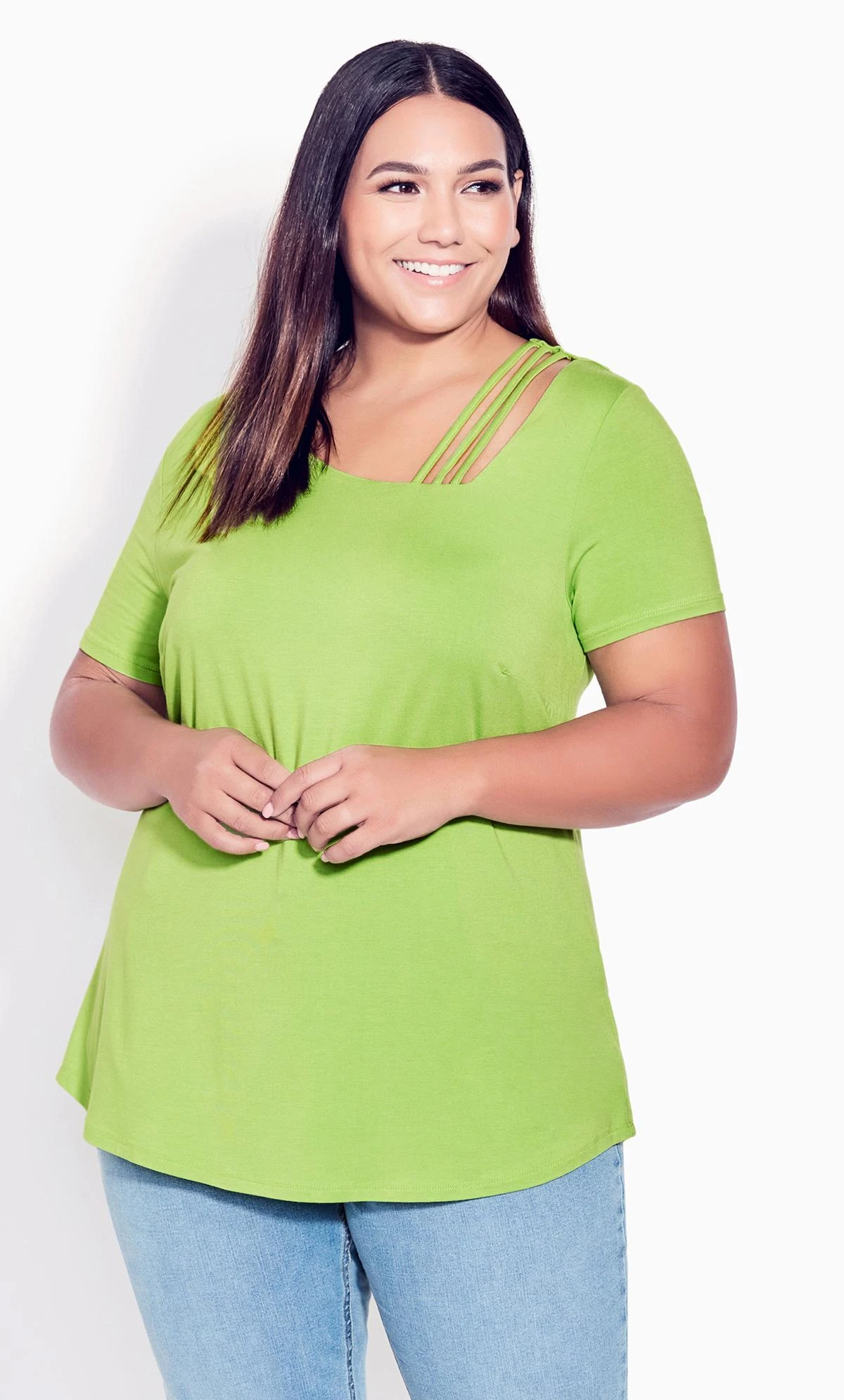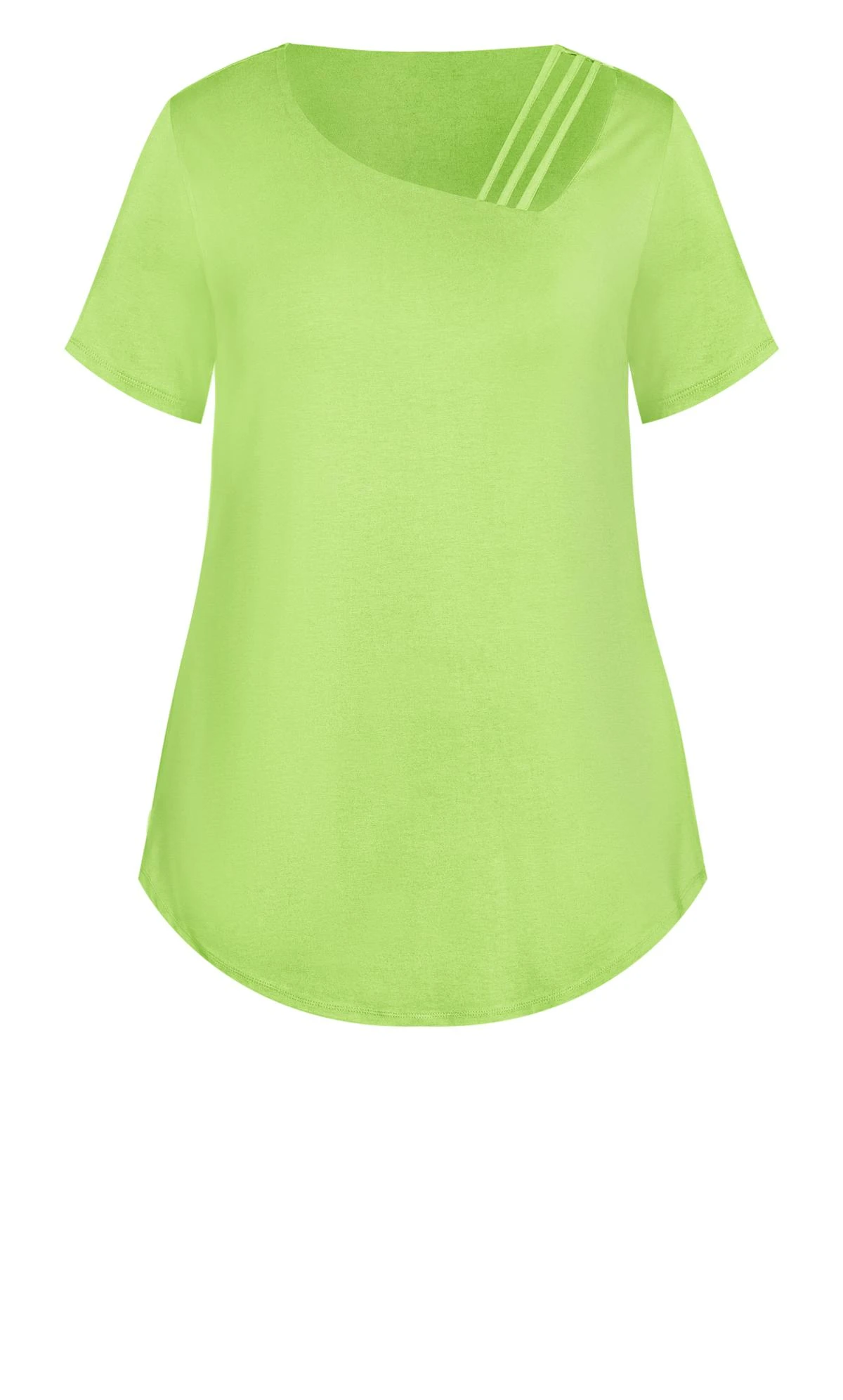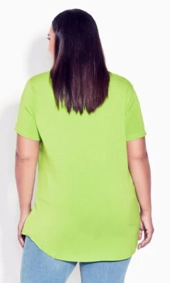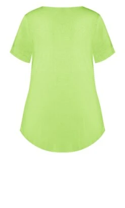 Elevate your style with the Avenue Lime Green Cut Out T-Shirt. Its vibrant hue and trendy cut-out design seamlessly blend comfort and fashion. Crafted for the fashion-forward, this tee adds a refreshing pop to your wardrobe. Stand out in a crowd with this unique and versatile piece.