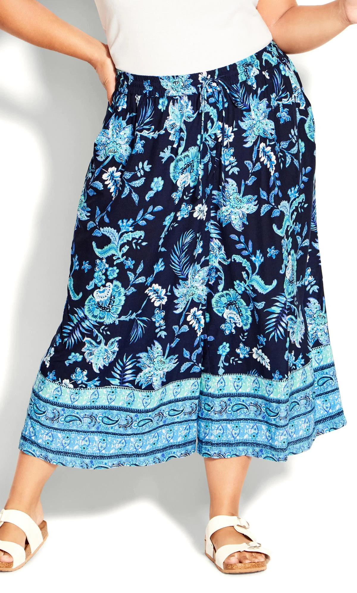 Keep it cute and casual with the Aurora Border Trouser! The elasticated drawstring waist and relaxed wide leg cut make this trouser ultra-comfortable, while the navy print adds a touch of style.