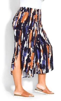 – Asymmetrical below-knee hemline with split sides