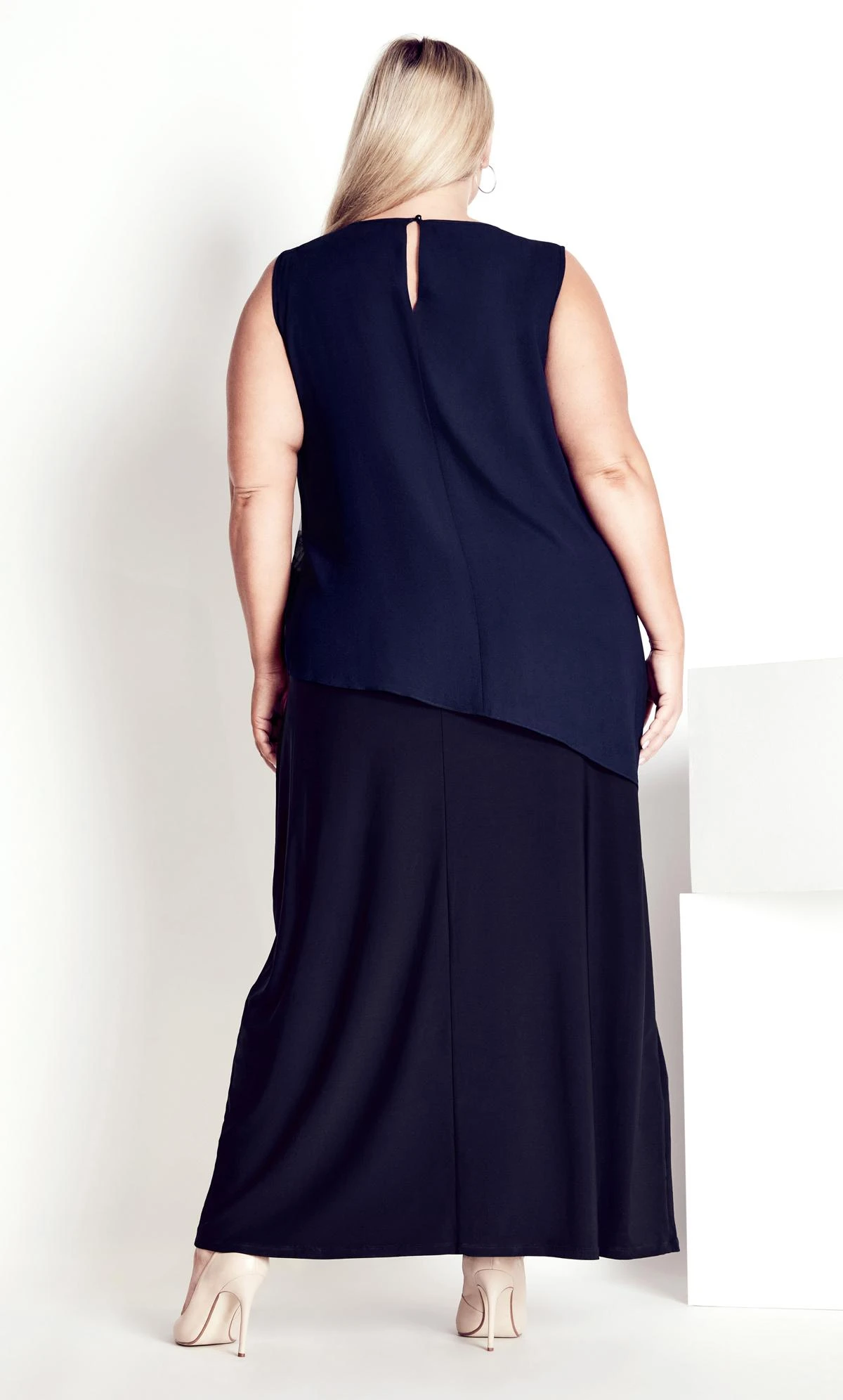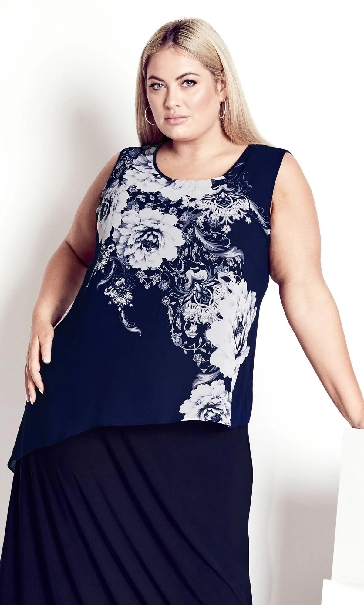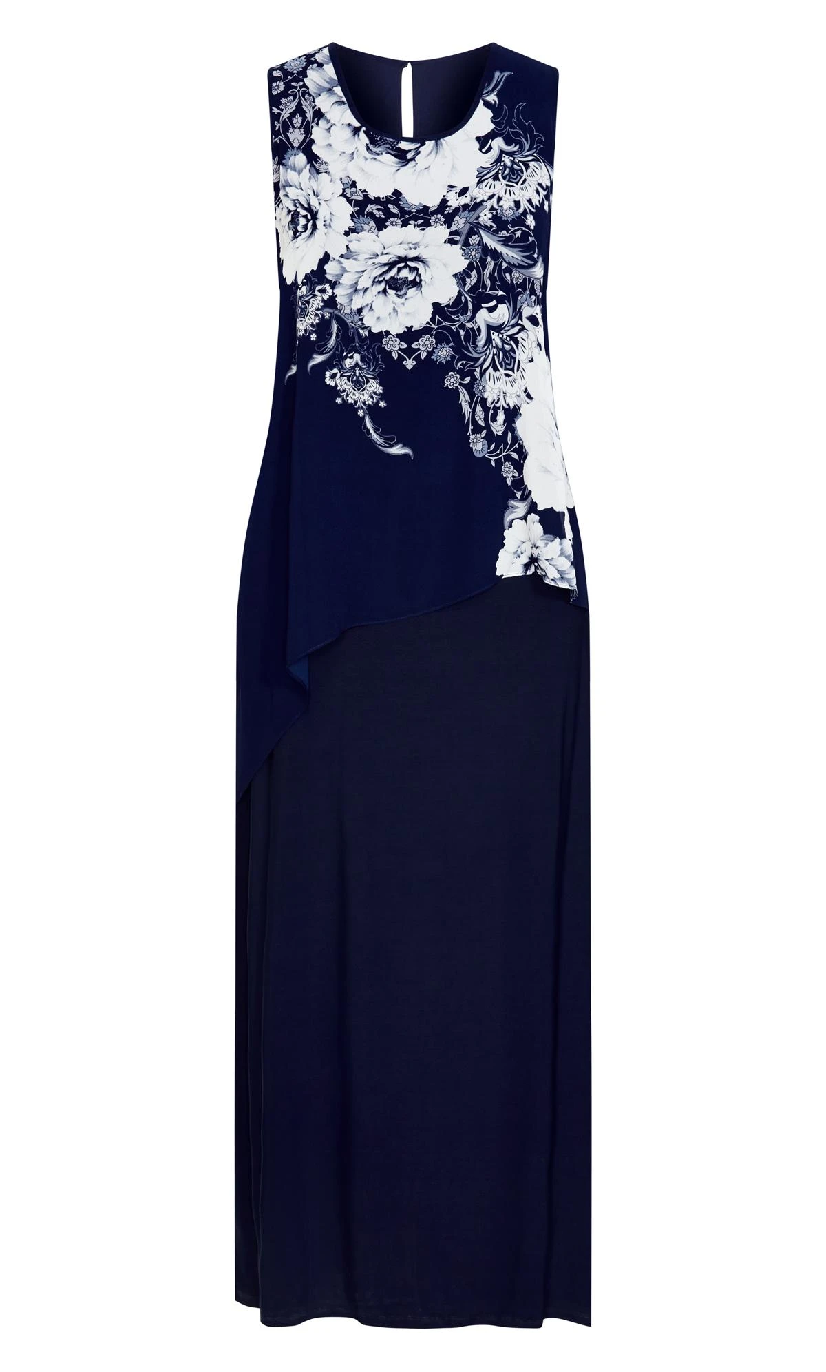 Double up on style with our Bronwyn Print Maxi Dress in an easy-to-style navy hue. The asymmetrical overlay features a stylish print that adds a feminine touch to your ensemble every time!
