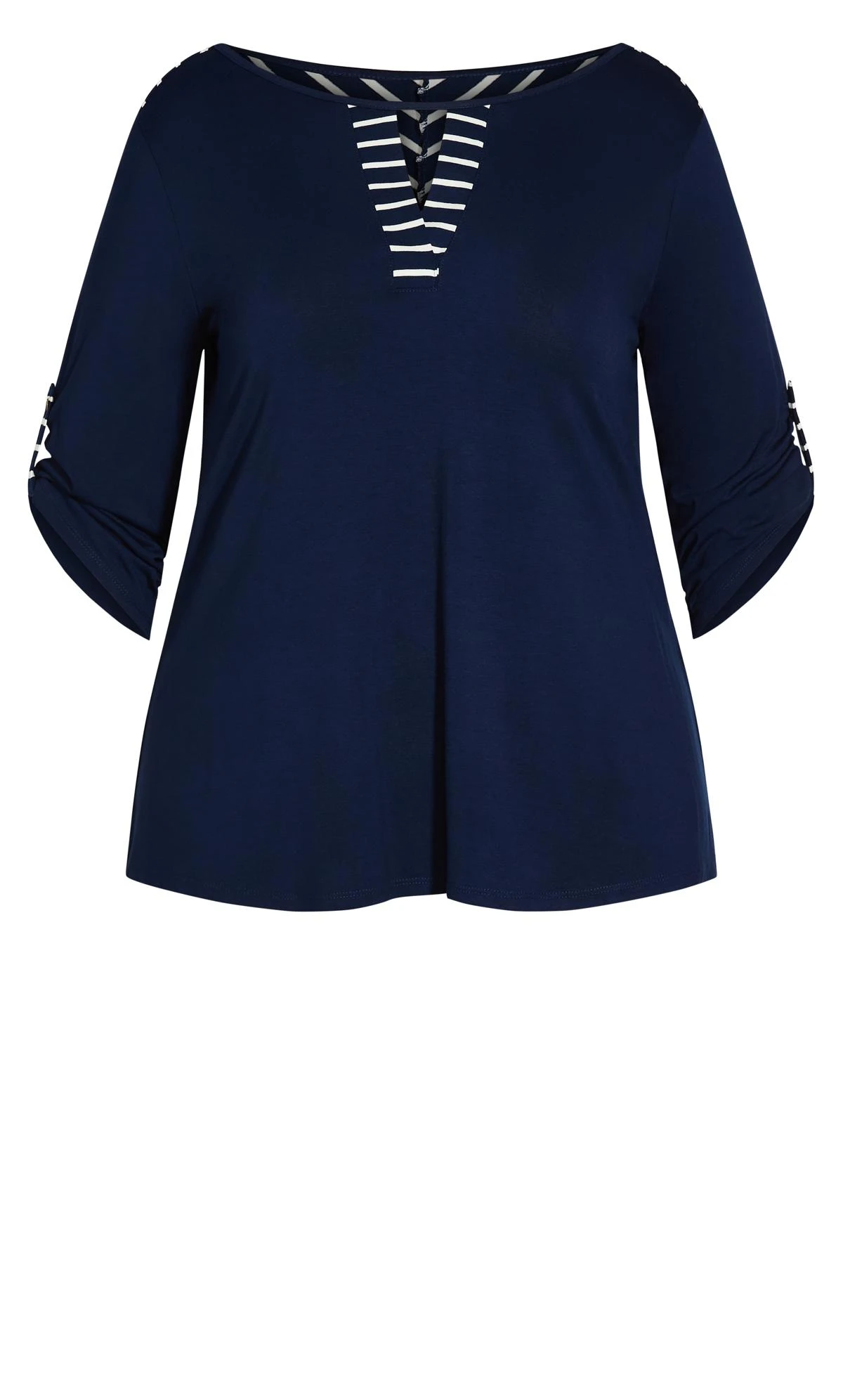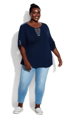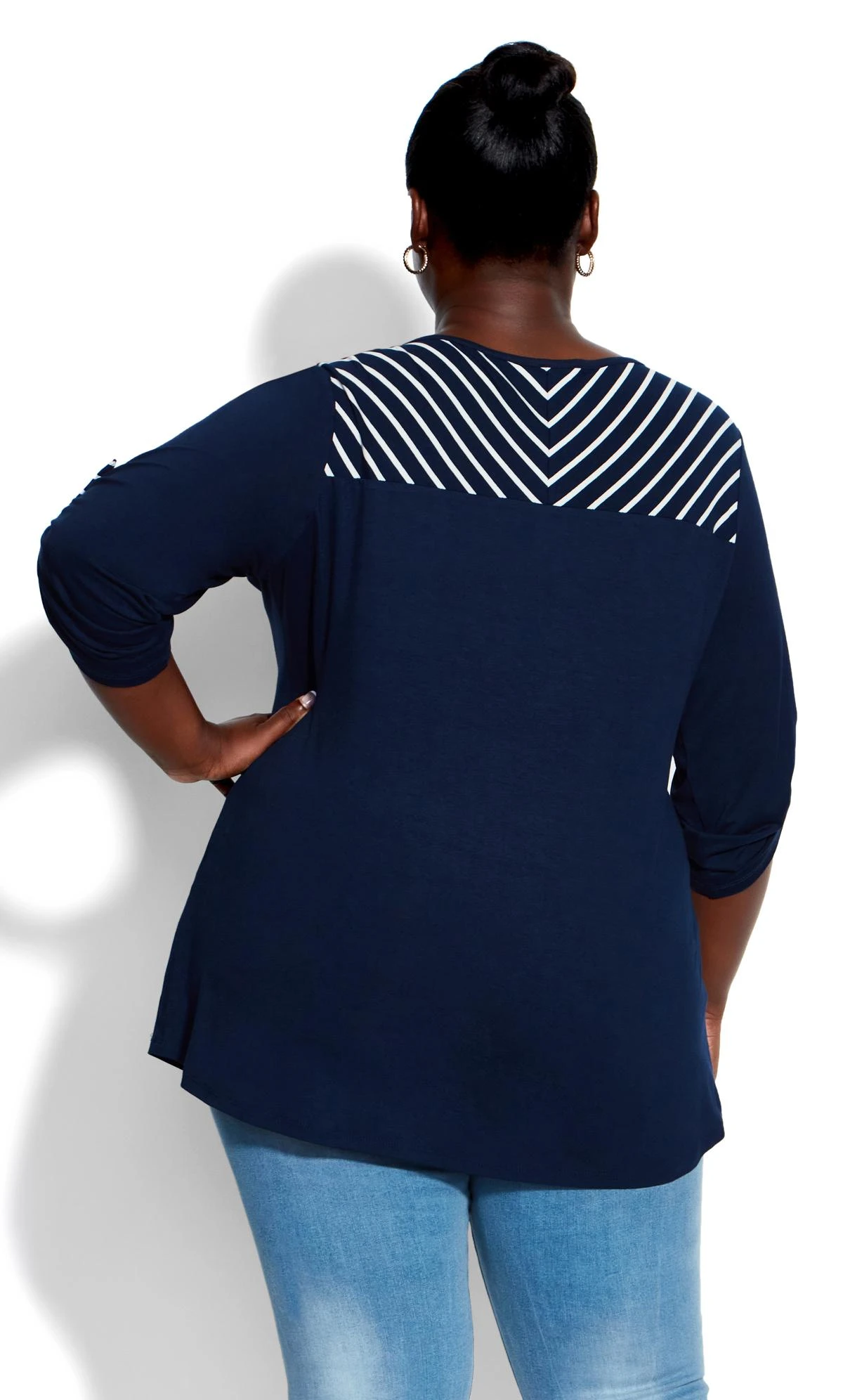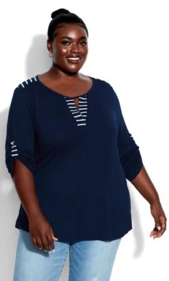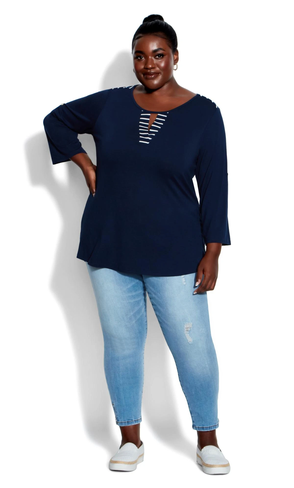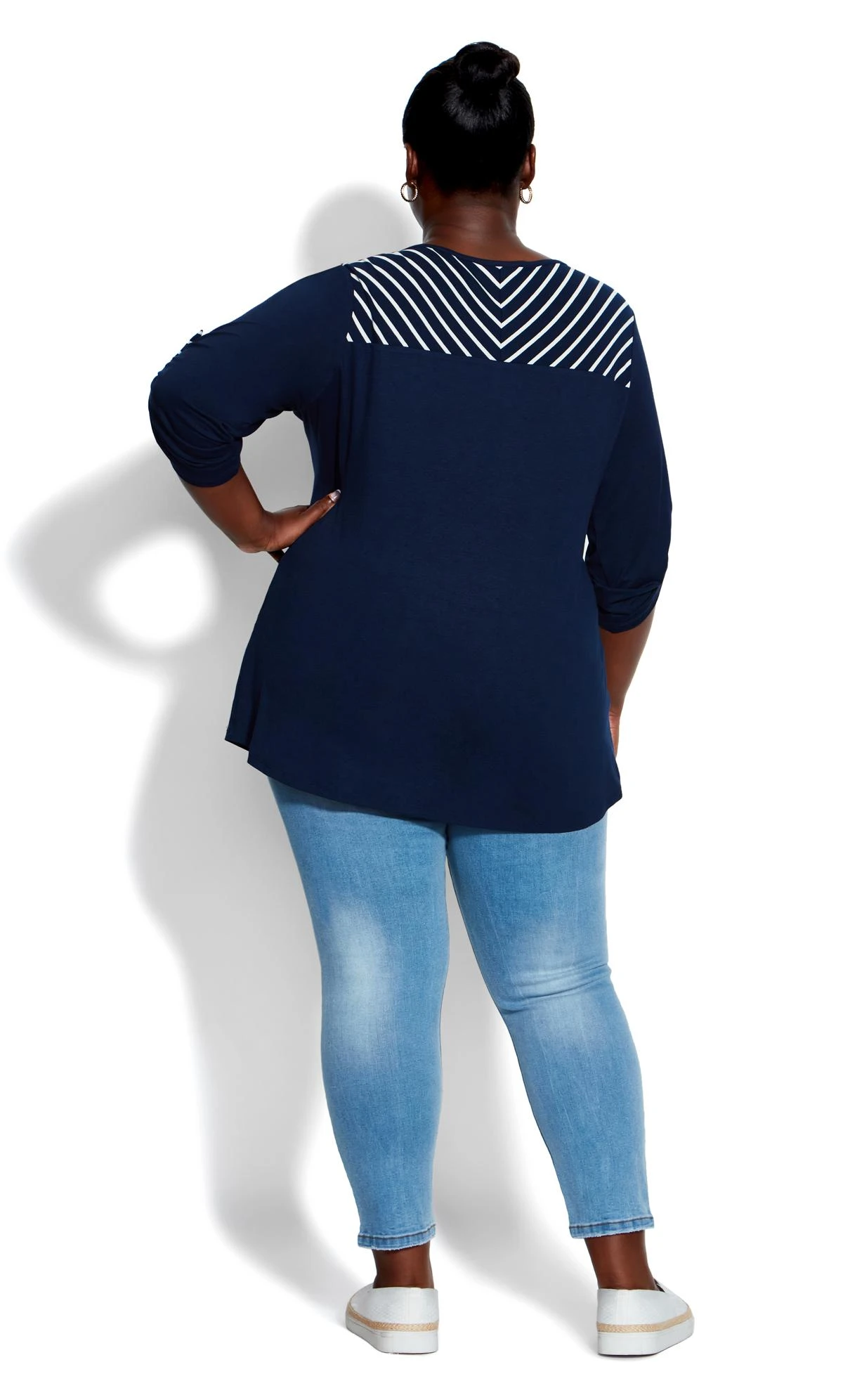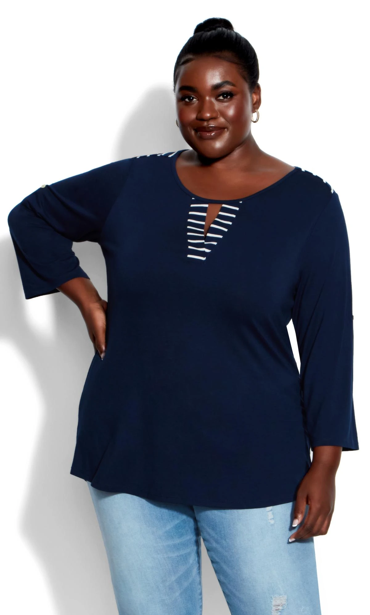 Stay on trend with the Keyhole Stripe Top! Ideal as a styling piece for the colder months, you’ll love the chic stripe print in a flattering fit and soft stretch fabrication. Stay comfortable all day long in this must-have top!