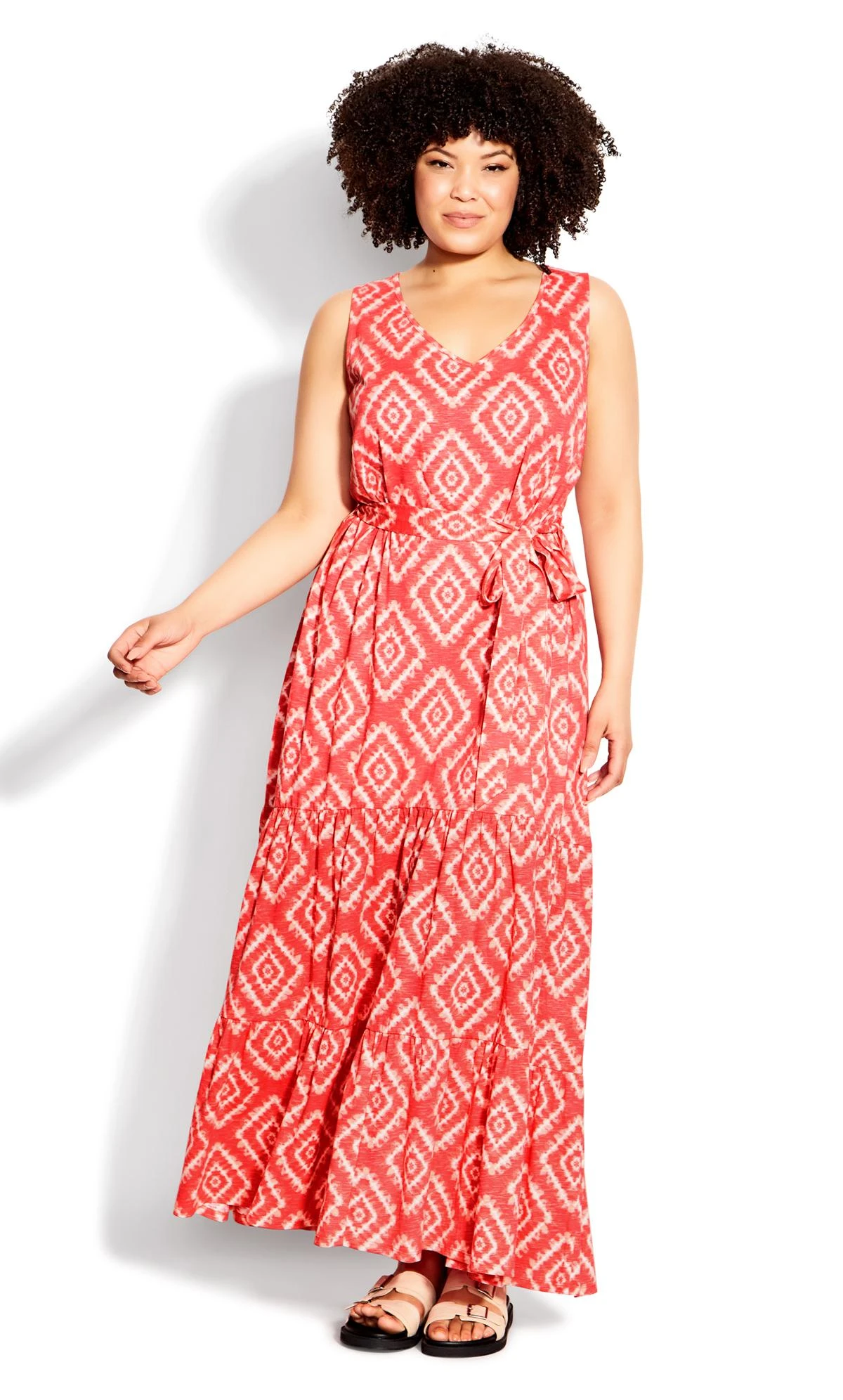 Give your wardrobe a warm-weather makeover with the coral print of the Annie Maxi Dress. The sleeveless silhouette and tie waist belt keep you comfortable while showing off your curves, finished with a dreamy maxi skirt.
