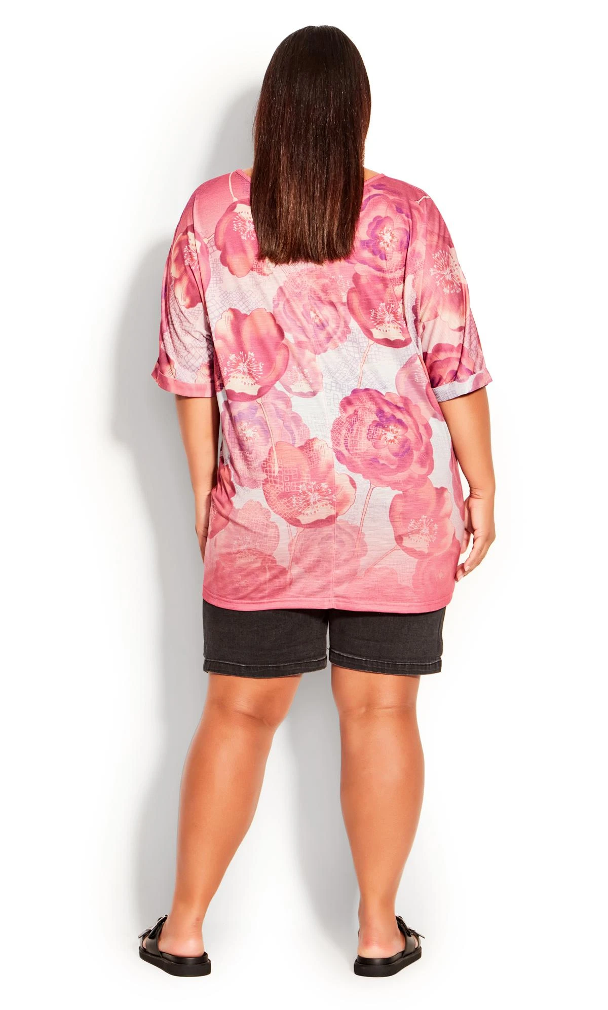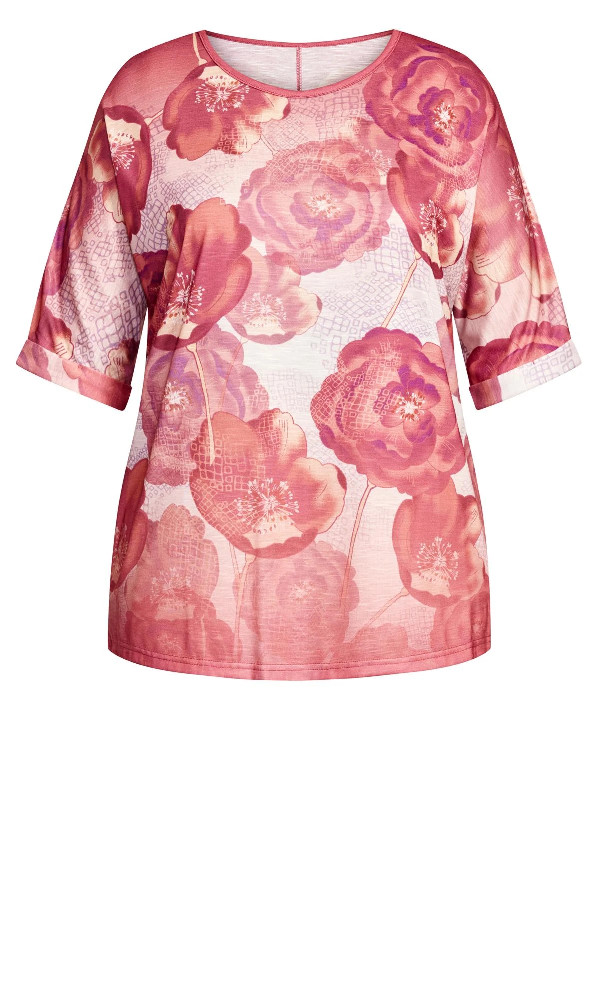 Elevate your casual style with the Avenue Red Floral Print Graphic T-Shirt. This t-shirt combines a touch of femininity with a modern edge, featuring a captivating purple hue adorned with a chic floral print graphic. For an effortless and stylish look, pair it with jeans and trainers.