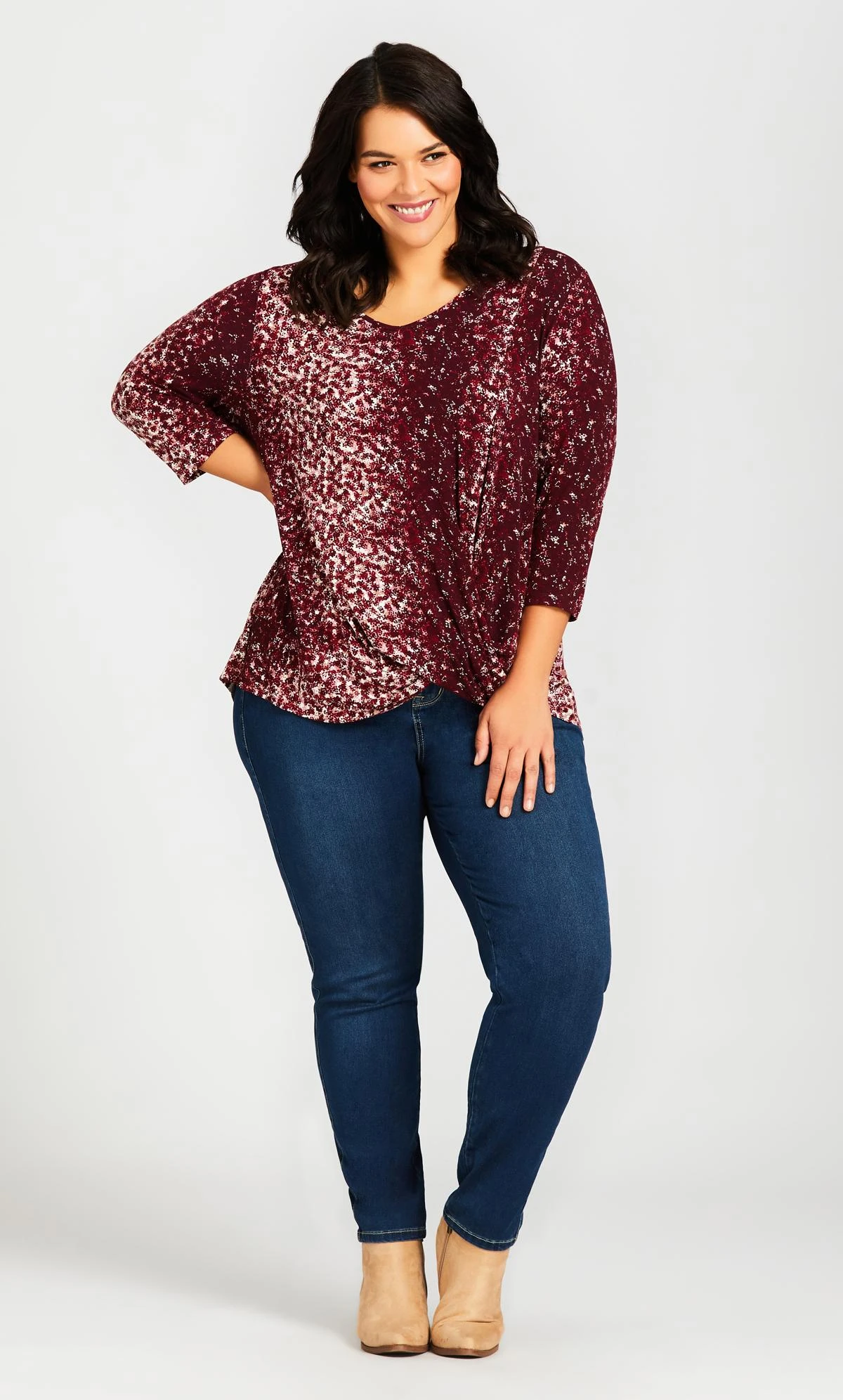 Sprinkle your look with something a little bit different in the Twist Stafford Top. A simple silhouette mixes things up with its bold berry print and feature twist front.