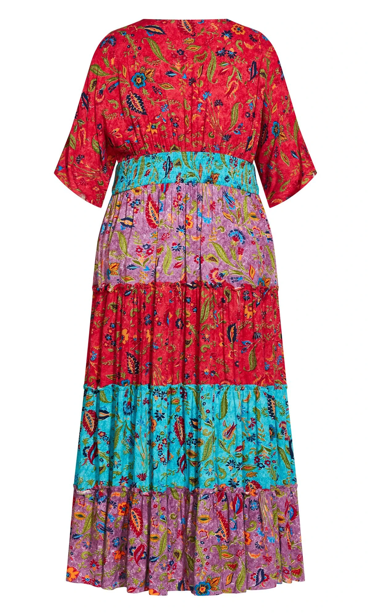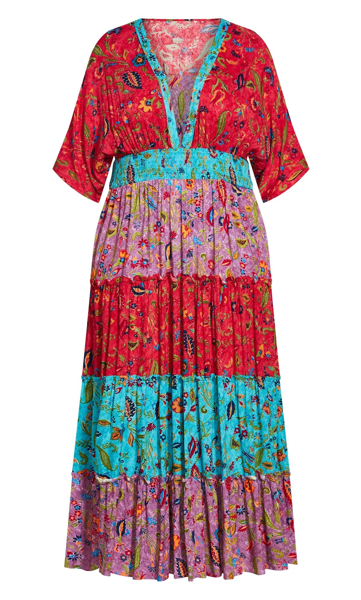 – Deep V-neckline with contrast panel insert