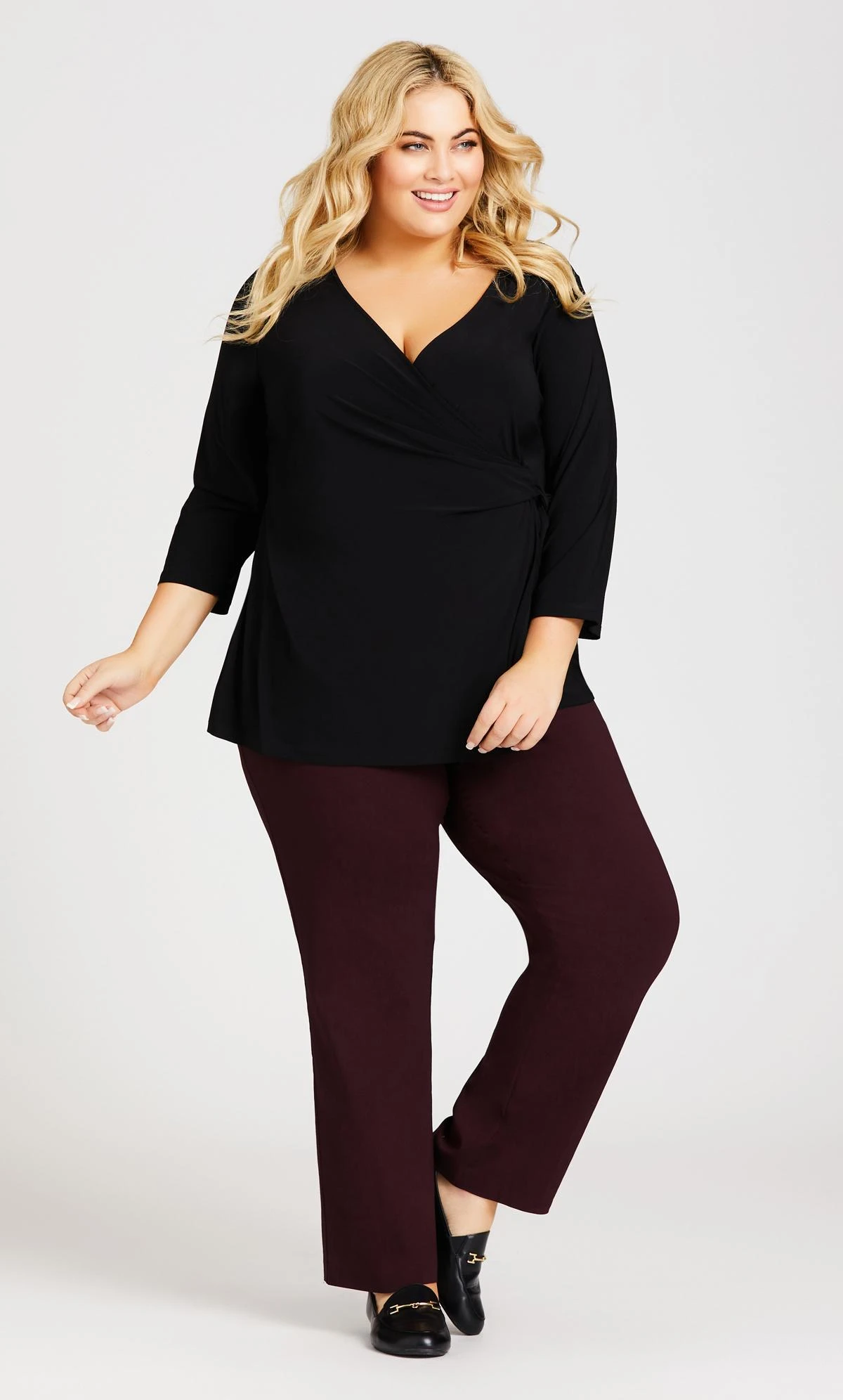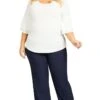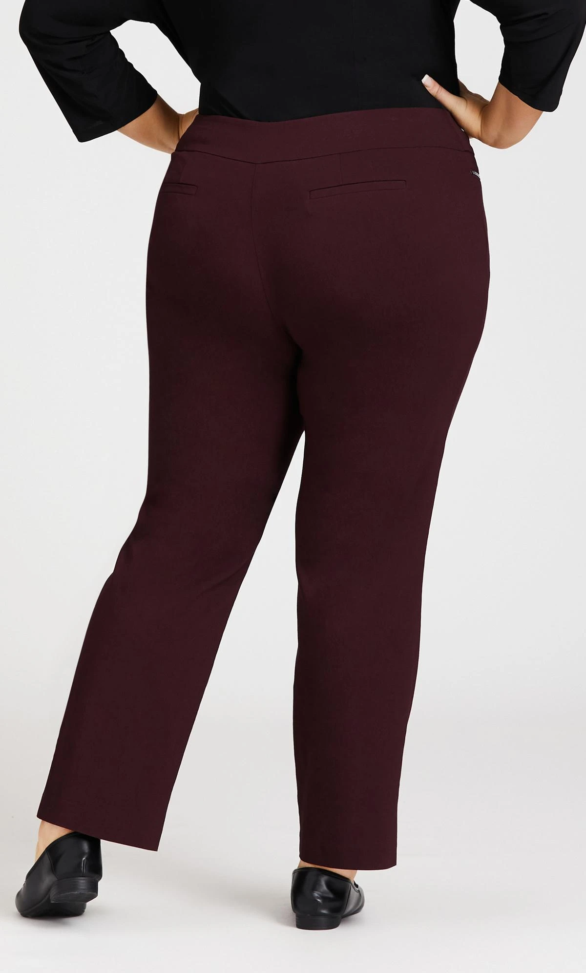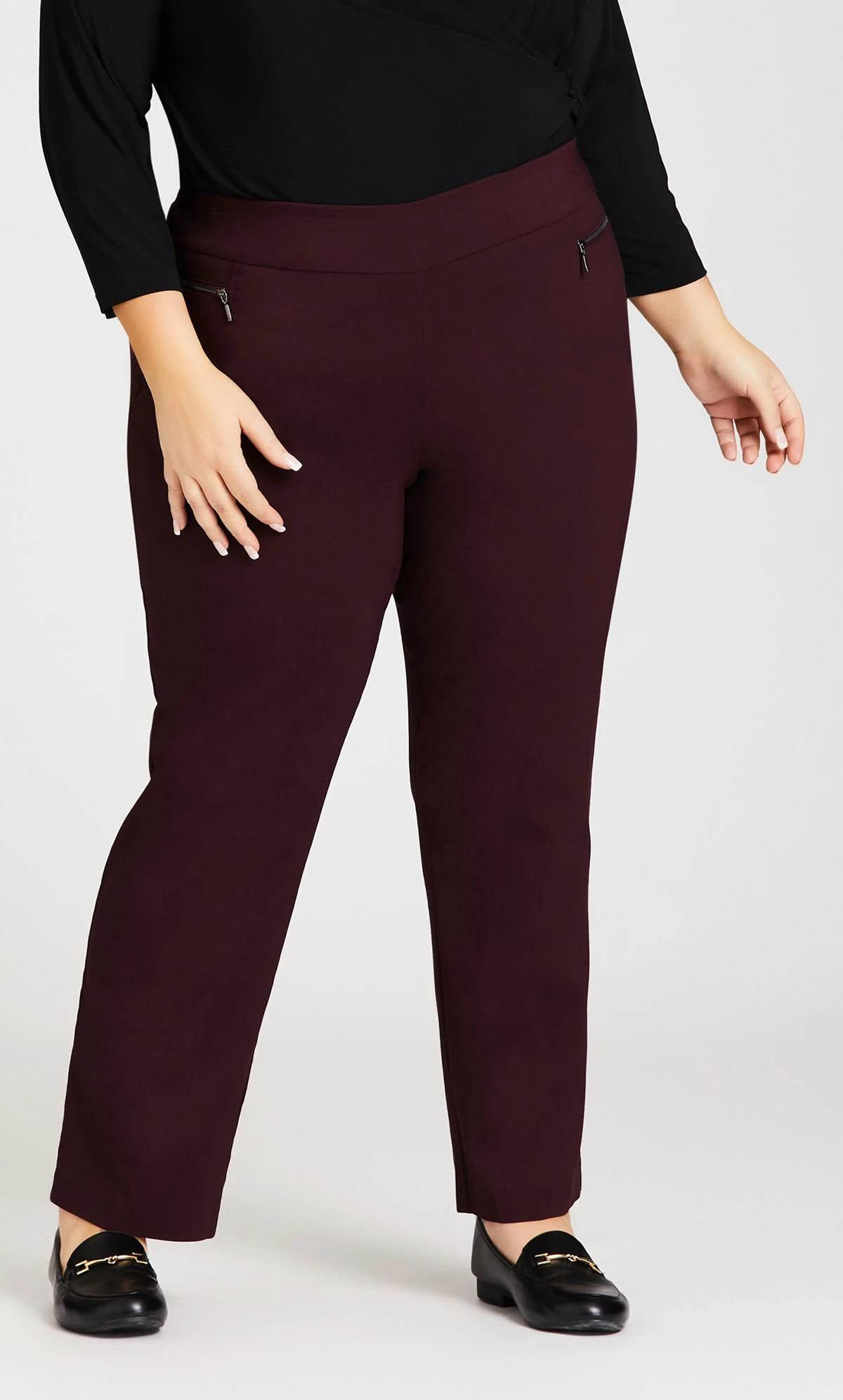 Flaunt your curves in stylish comfort, the Super Stretch Zip Pant offers both form and function with a mesh tummy control insert to smooth and shape the figure, functional 5 pocket design and super stretch fabrication. Key Features Include: – Wide comfort waistband – Mesh tummy control insert – Pull on style – Functional zip front pockets – Faux back suit pocket detail – Super stretch finish fabrication – Straight leg – Ankle length hemline