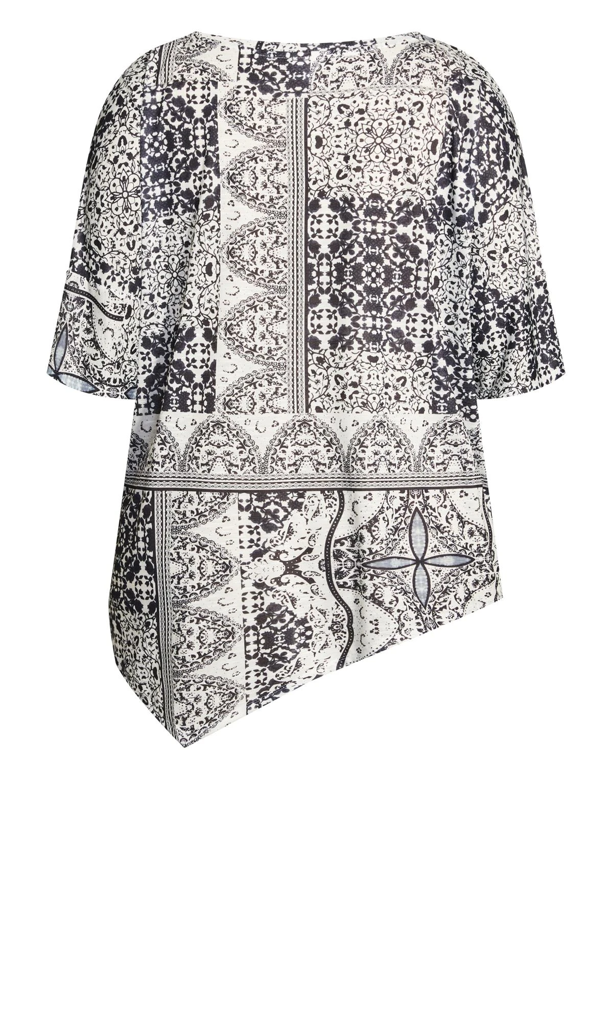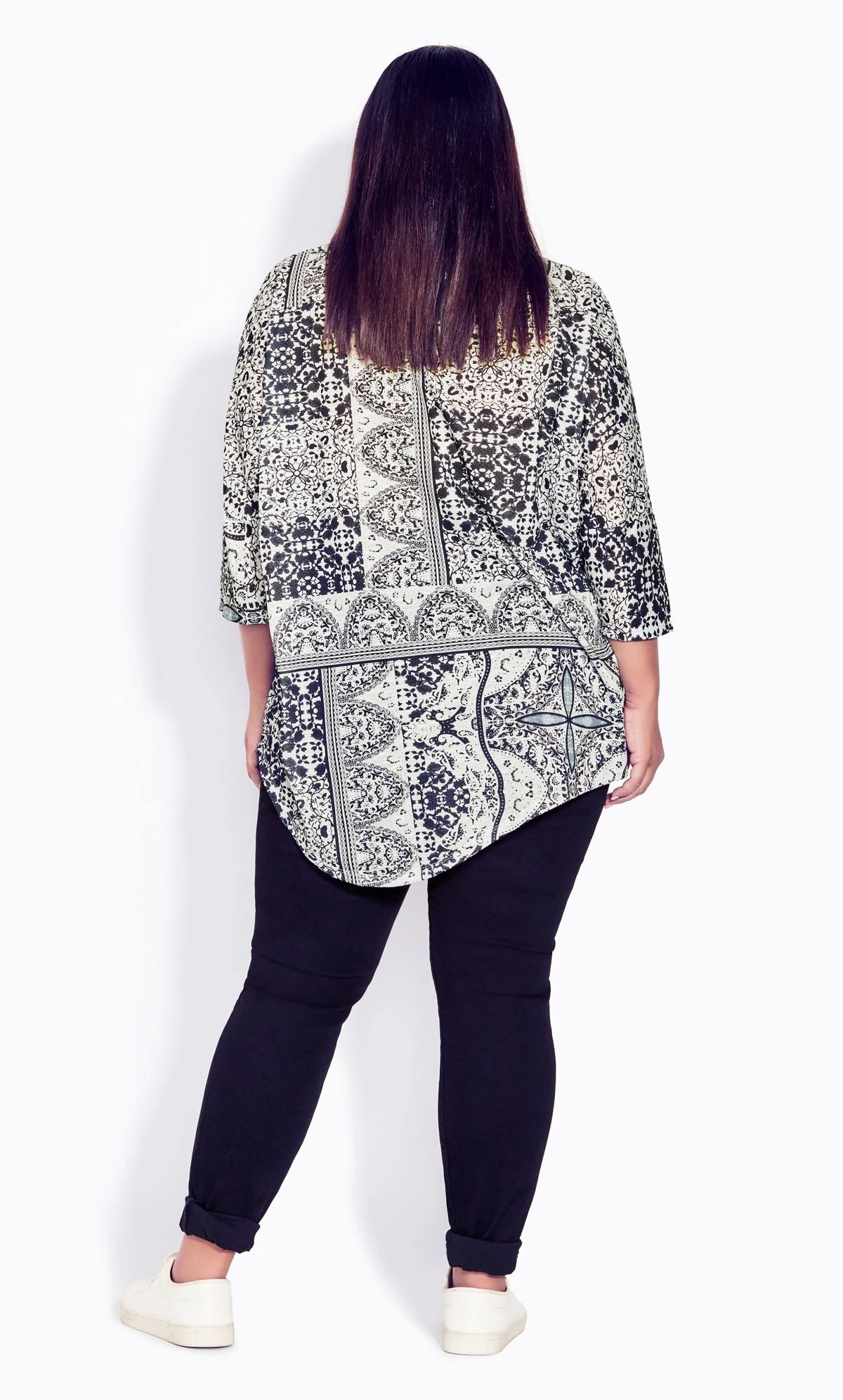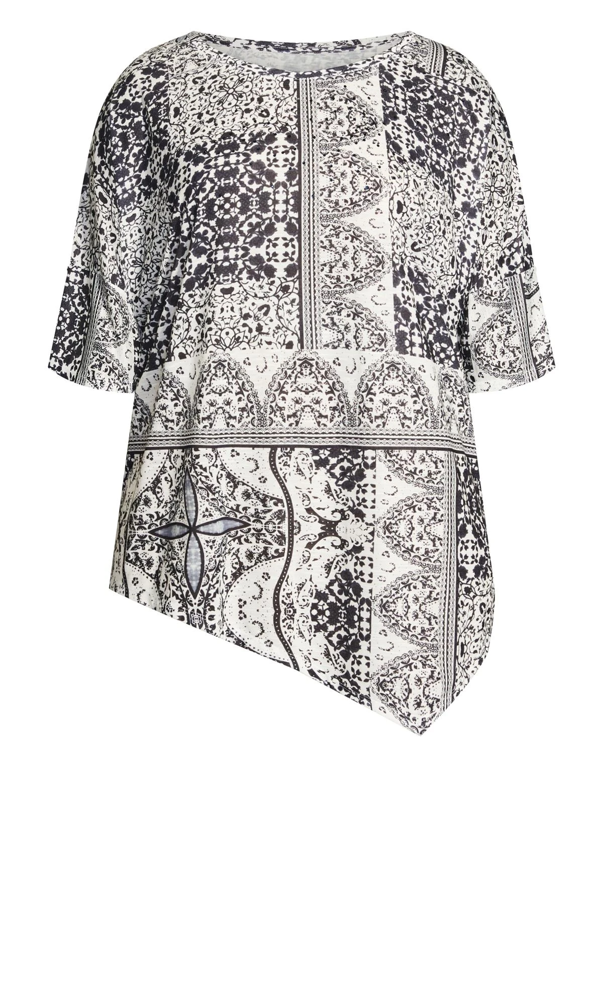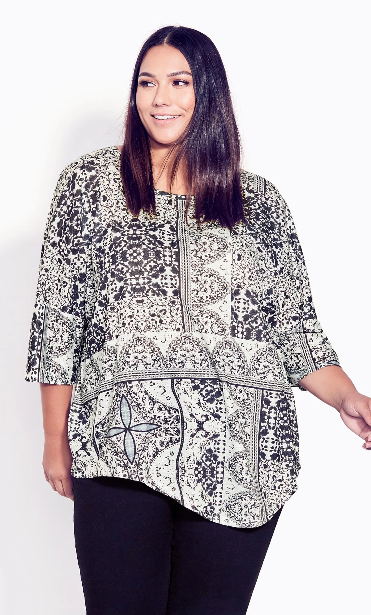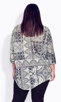 Elevate your ensemble with the Avenue White Paisley Print Longline Top. The intricate paisley print adds a touch of bohemian flair to this longline piece, while the classic white hue maintains its timeless appeal. Whether paired with leggings for a relaxed look or dressed up with trousers, this top guarantees a chic and versatile style for any occasion.