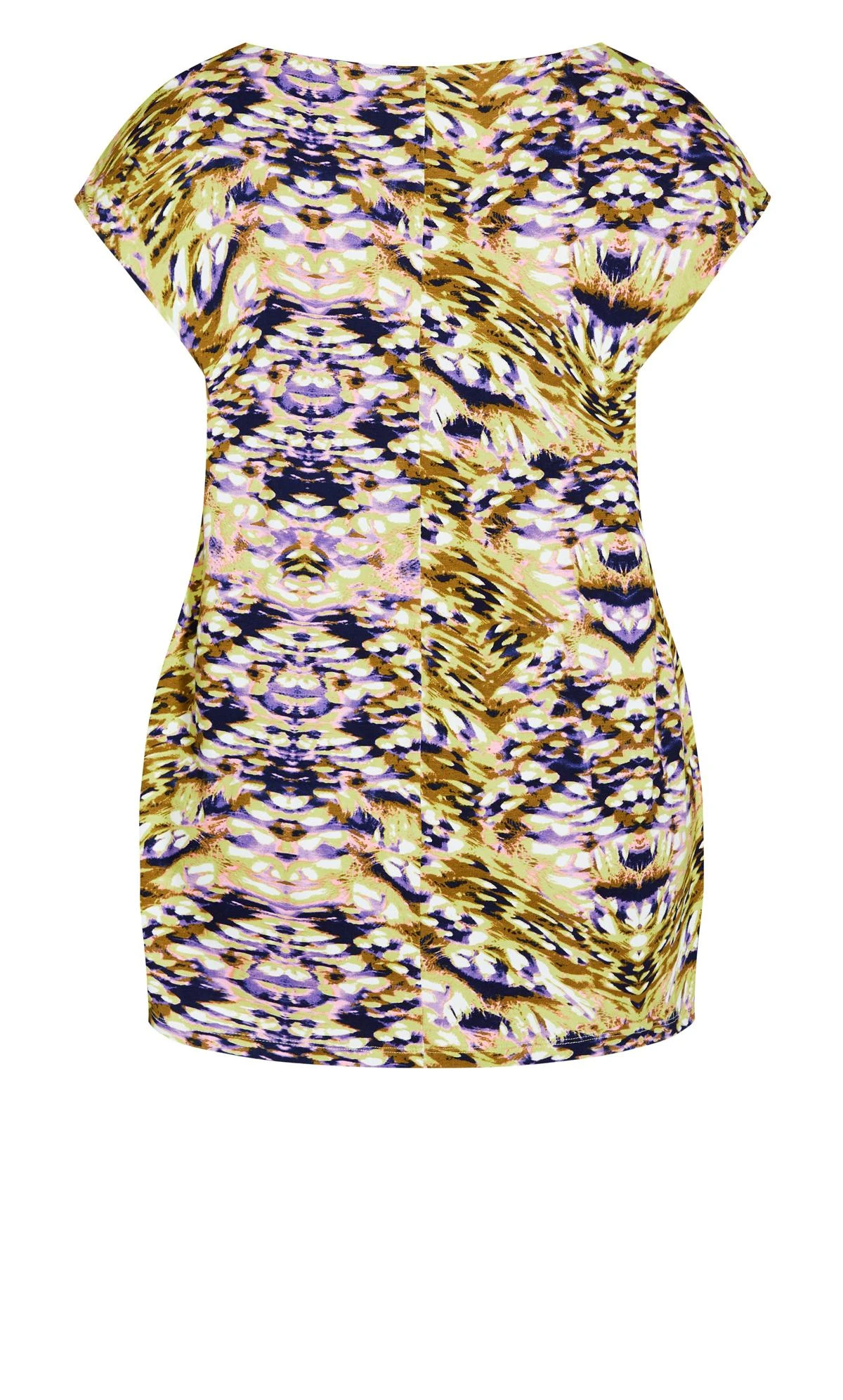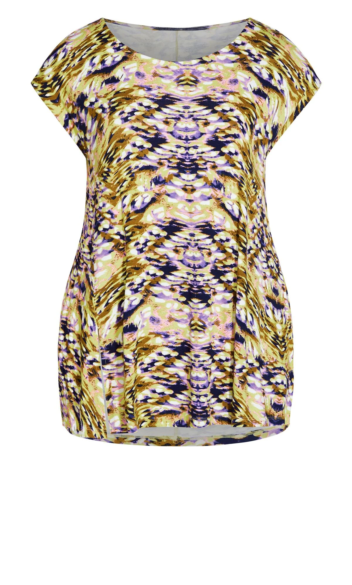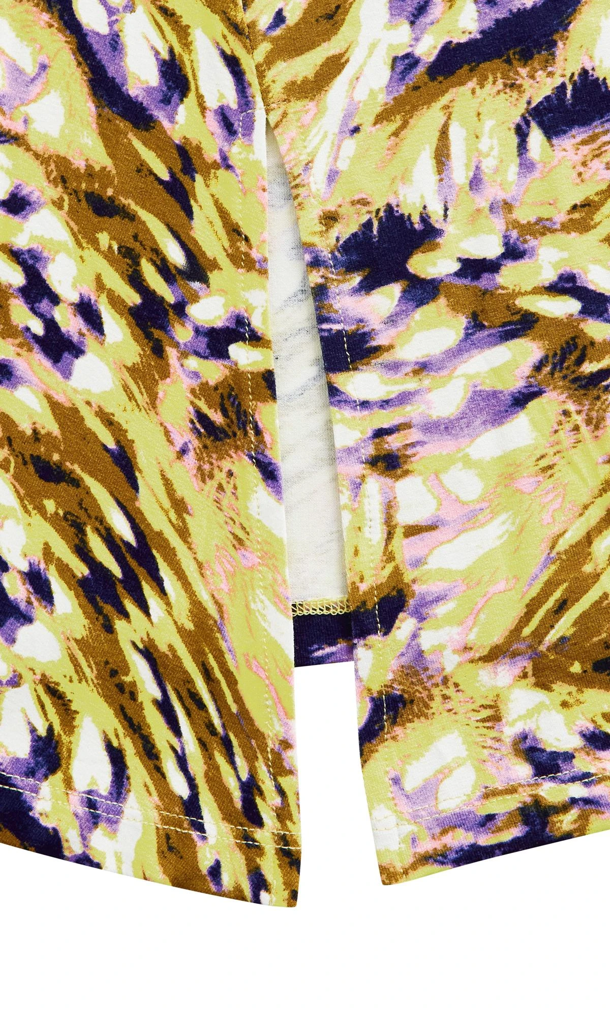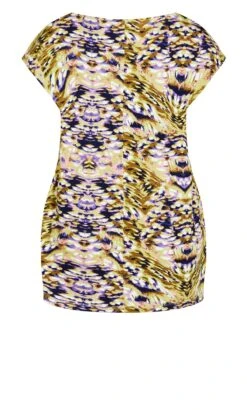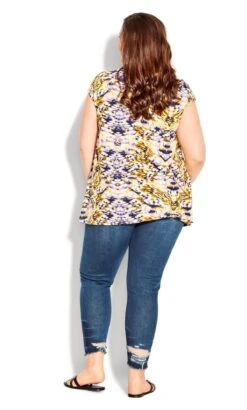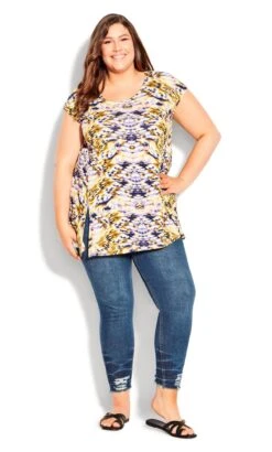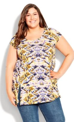 For a fresh and bright look, you can’t go wrong wearing the Split Side Print Top. Chic and comfortable, this style offers short cap sleeves and a charming round neckline.