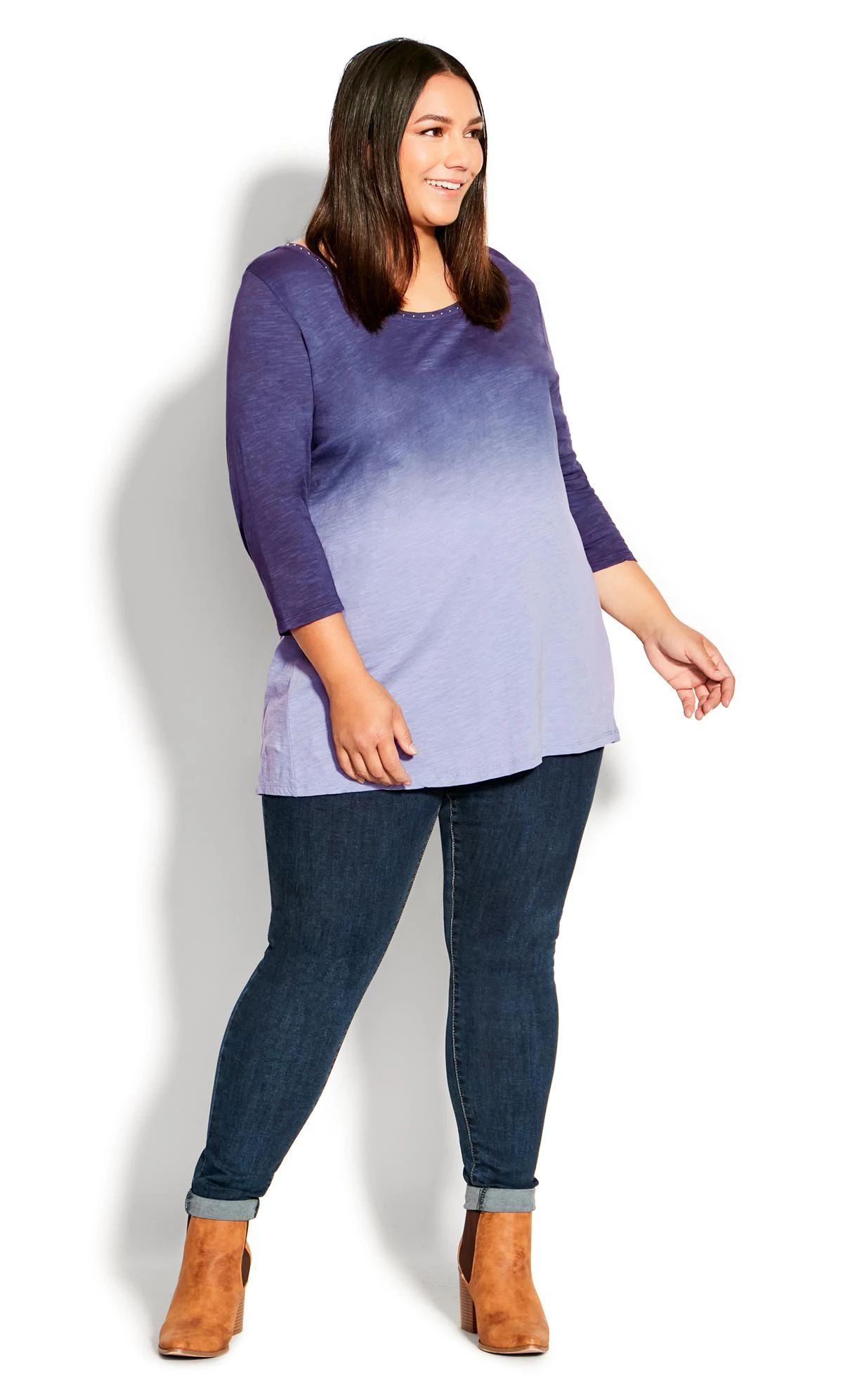 Experience laid-back style with a pop of colour in the Avenue Purple Tie Dye T-Shirt. The captivating tie-dye pattern in shades of blue adds a trendy touch to this classic t-shirt silhouette. Perfect for relaxed outings or pairing with your favourite jeans, this t-shirt effortlessly brings a touch of bohemian flair to your everyday look.