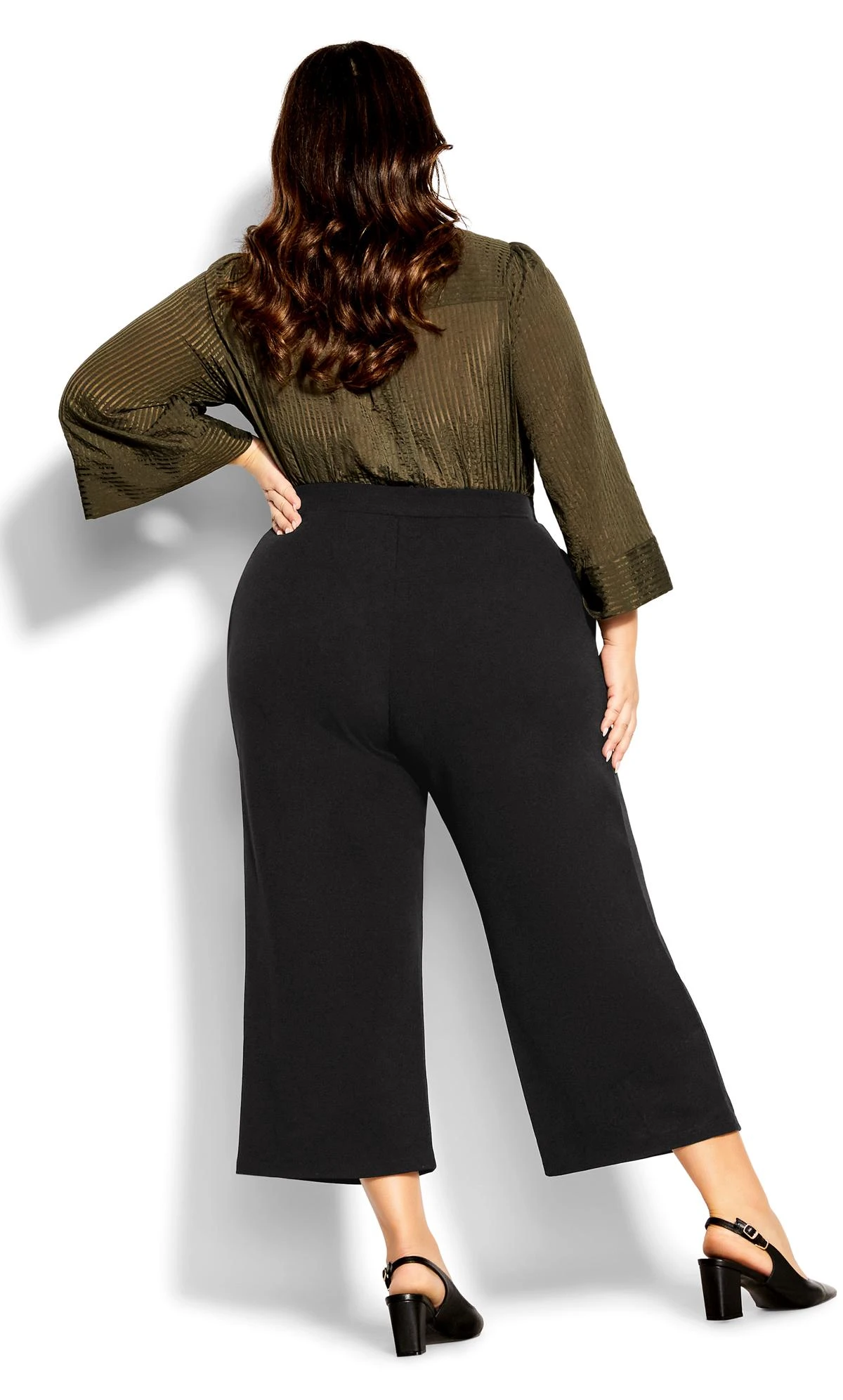 Unveil modern elegance with the City Chic Black Formal Tie Waisted Culotte. Combining sophistication with contemporary style, these culottes feature a formal tie-waist detail. From office to special occasions, they effortlessly blend comfort and versatility, making them a must-have addition to your wardrobe for a polished and fashion-forward look that stands out.