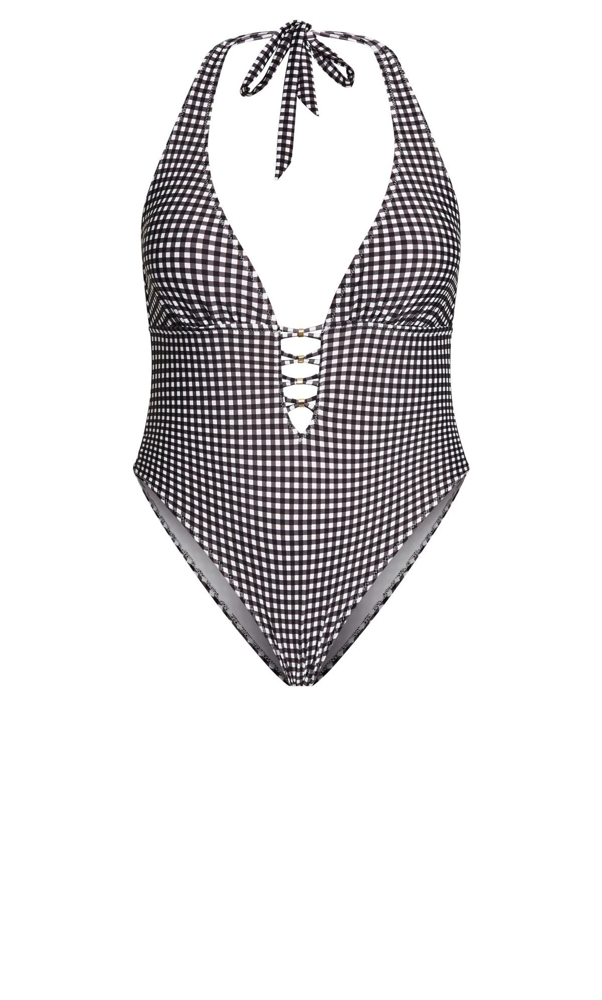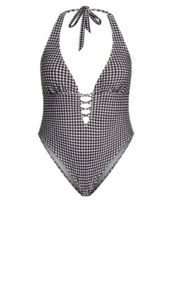 Make a chic statement at the beach with the City Chic Black Gingham Swimsuit. The timeless gingham pattern meets modern design, creating a flattering and stylish look. Dive into confidence and comfort with this must-have swimsuit for your sunny escapades.
