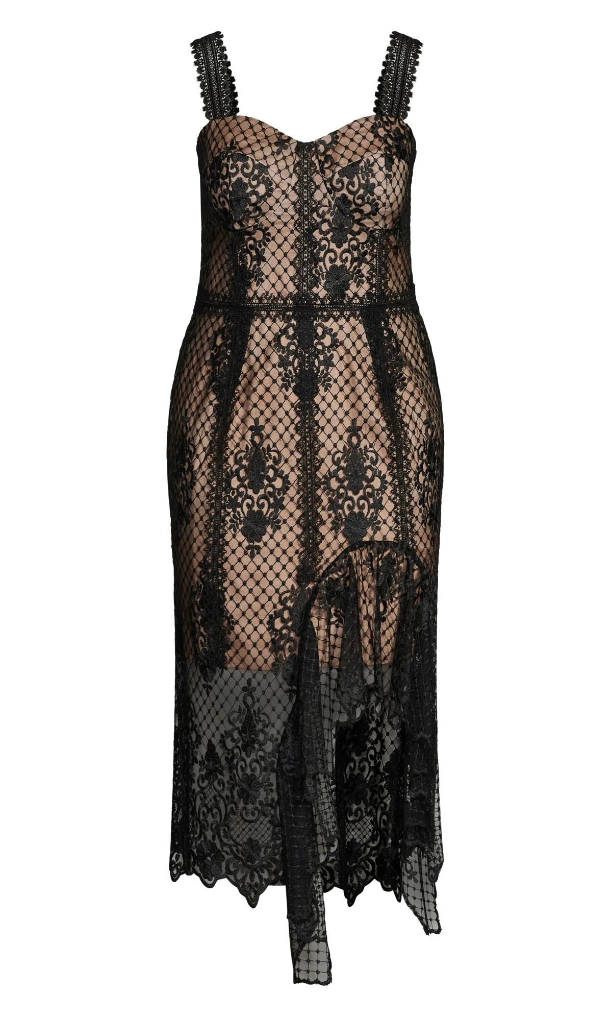 For a sophisticated finish, pair this dress with black heels and a pod clutch.