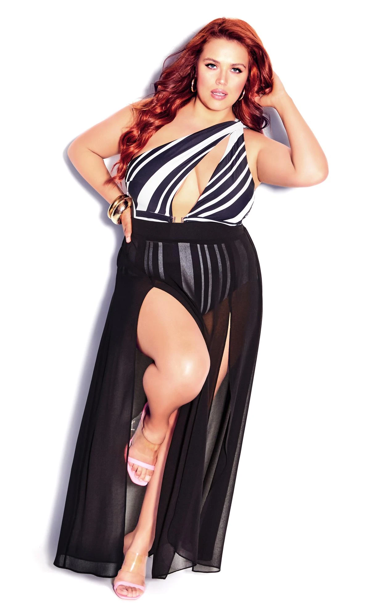 Exude confidence in the City Chic Black Mono Stripe Swimsuit. With its sleek black design and striking mono stripe, this swimsuit blends style and comfort seamlessly. Whether lounging by the pool or strolling on the beach, embrace your unique flair with this chic and flattering choice.