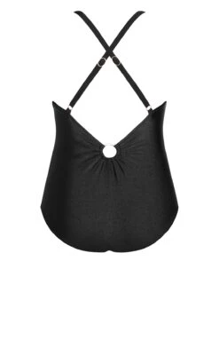 Make a statement with the ultimate poolside glamour with the City Chic Black Ring Front Swimsuit. Crafted to perfection, this swimsuit showcases a captivating ring front detail that adds a touch of elegance to your swimwear collection. Embrace both comfort and style as you lounge by the water, exuding confidence in this timeless black swimsuit from City Chic.
