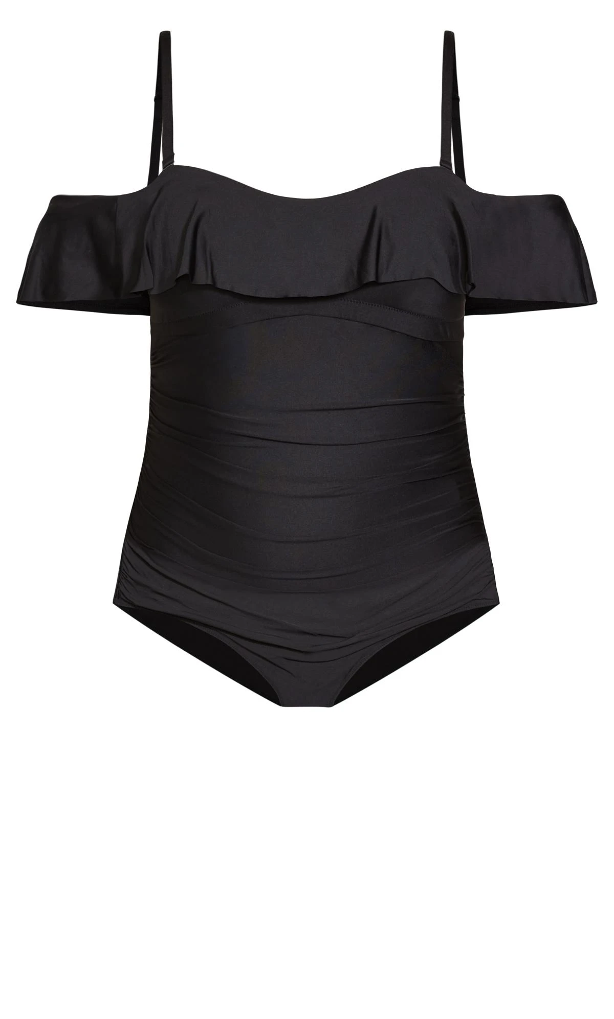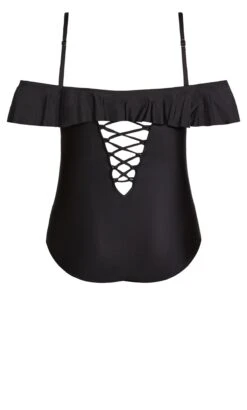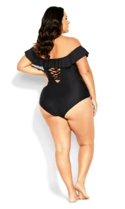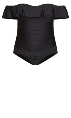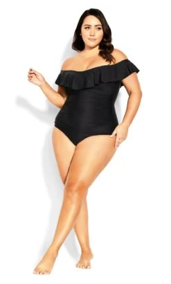 Unveil timeless elegance by the water with the City Chic Black Ruffle Bardot Swimsuit. This swimsuit effortlessly combines sophistication with a touch of romance, featuring a chic black hue and graceful ruffle detailing along the Bardot neckline. Crafted for both style and comfort, it’s a versatile addition to your swimwear collection, ensuring you exude confidence and charm whether you’re at the beach or by the pool.
