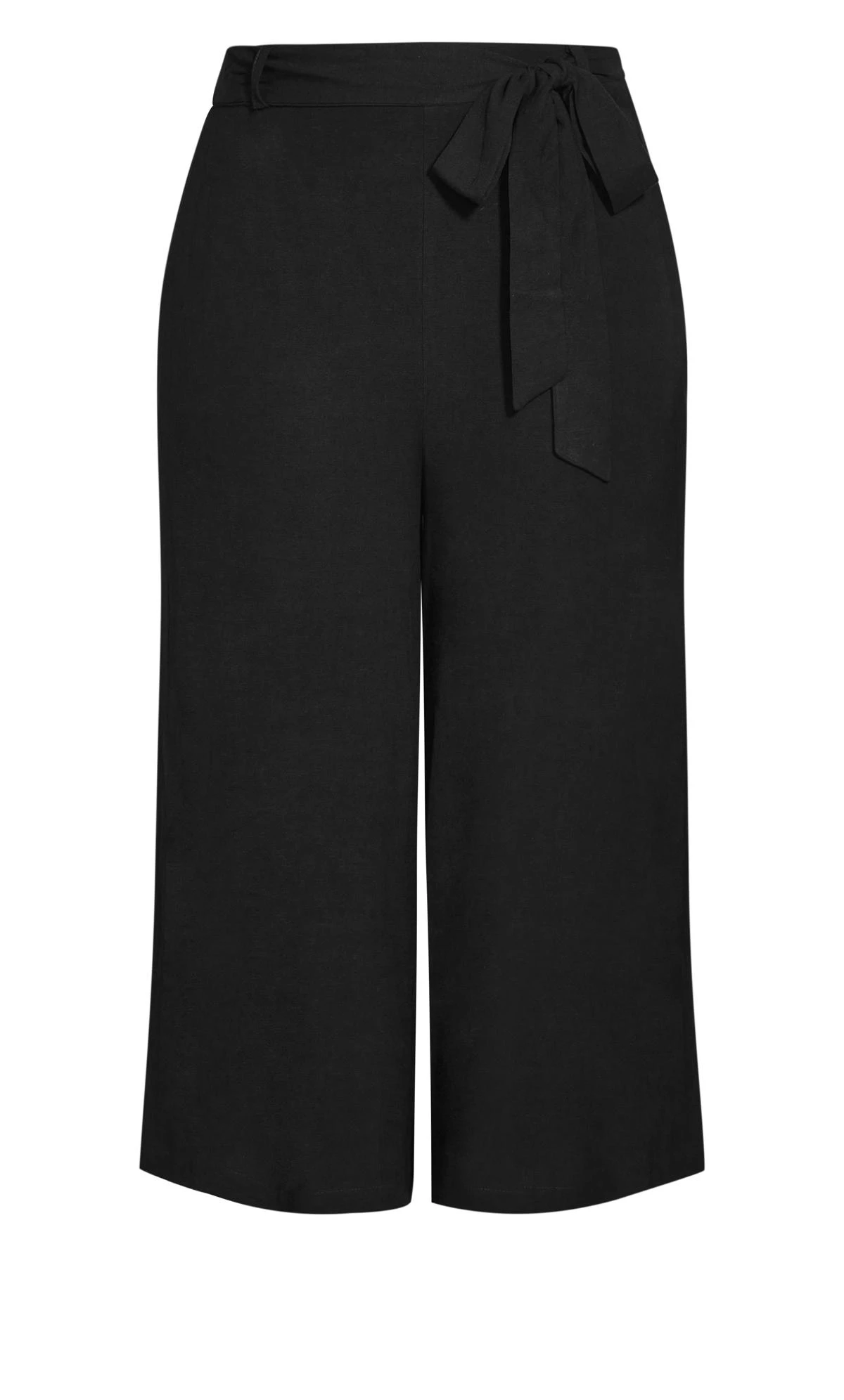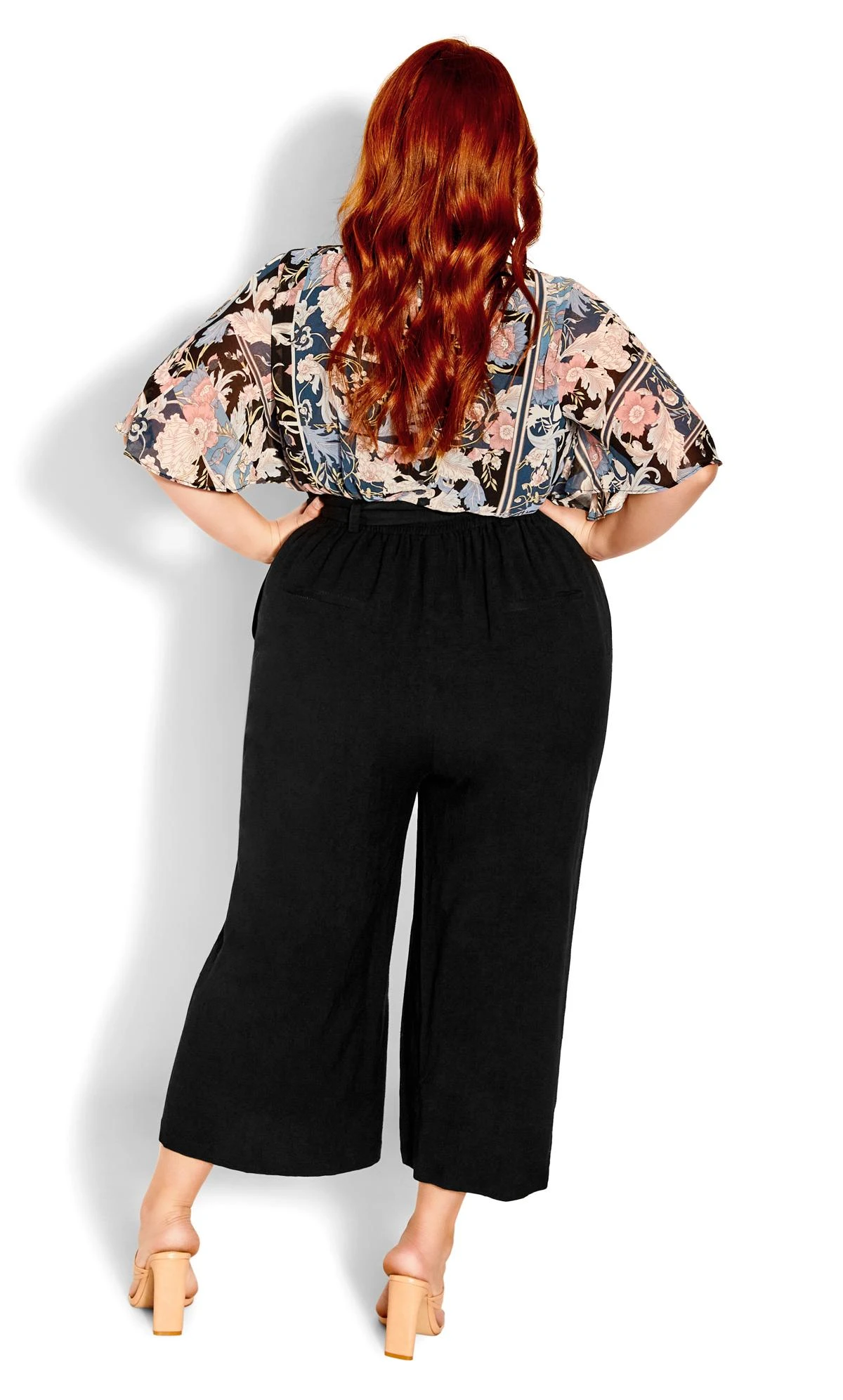 Elevate your style with City Chic Black Tie Front Wide Leg Trousers. The classic black hue meets a chic tie-front design, creating a sophisticated yet versatile look. Crafted for both comfort and fashion, these wide leg trousers seamlessly transition from day to night, making them a staple piece in your wardrobe for modern elegance.