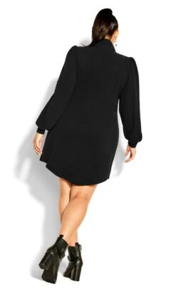 Elevate your style with the City Chic Black Tie Neck Shift Mini Dress. The classic black hue meets a chic tie neck detail, adding a touch of sophistication to this mini dress. Crafted for both comfort and fashion, its shift silhouette offers a modern and versatile look, making it a staple piece for creating effortless and polished ensembles.