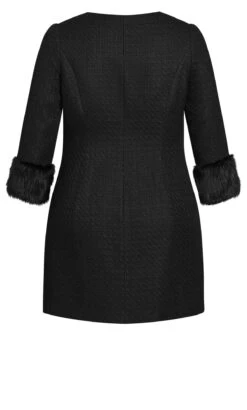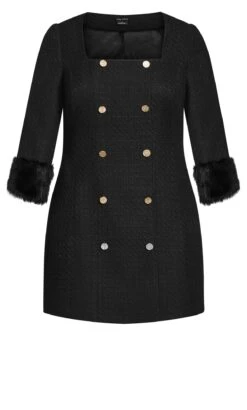 The City Chic Black Tweed Mini Dress seamlessly merges sophistication and edginess. Its classic black tweed fabric is adorned with chic buttons, while the feather sleeves add a touch of dramatic flair. This dress is a bold statement piece that captures attention with its unique combination of textures and elements, making it perfect for those seeking a standout look.