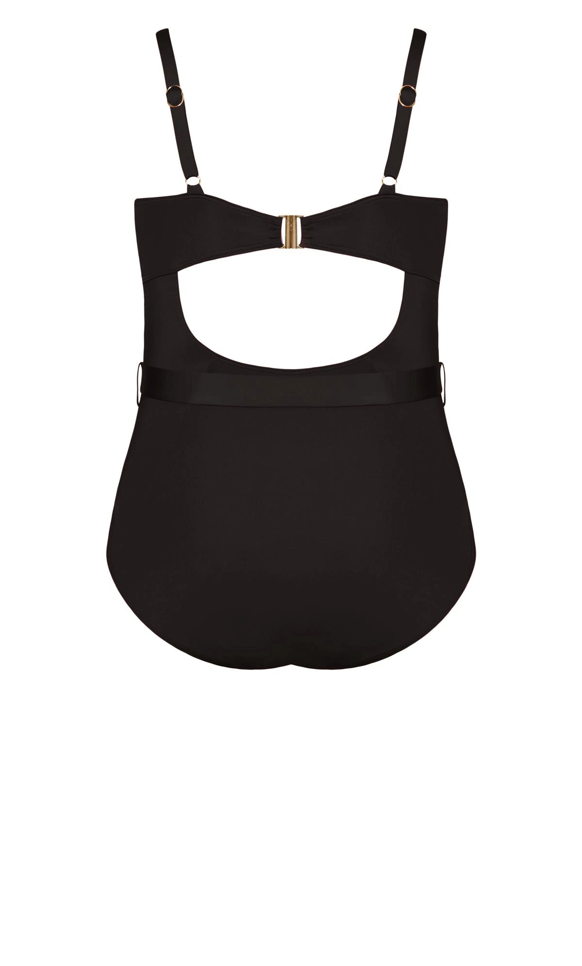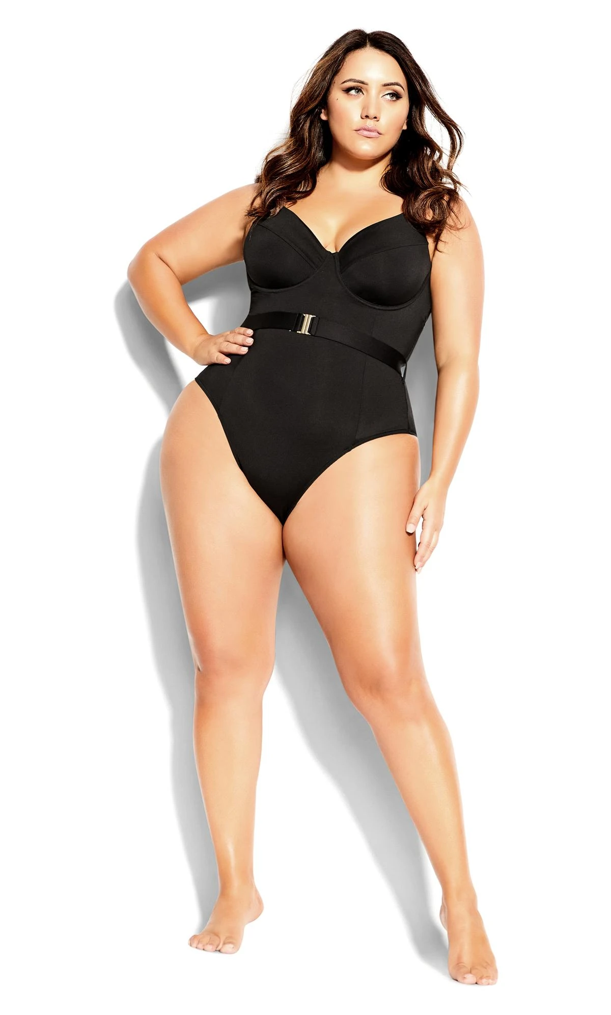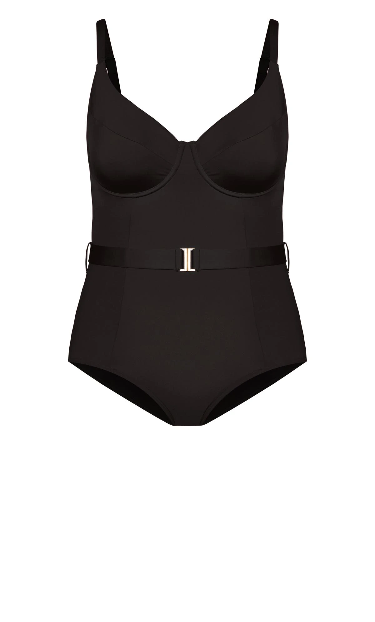 Discover the epitome of beachside glamour with the City Chic Black Underwired Belted Swimsuit. Designed to flatter, the underwired support enhances your curves. The belted detail adds a touch of sophistication, while the classic black hue exudes timeless elegance. Dive into comfort and confidence, making a statement wherever you go.