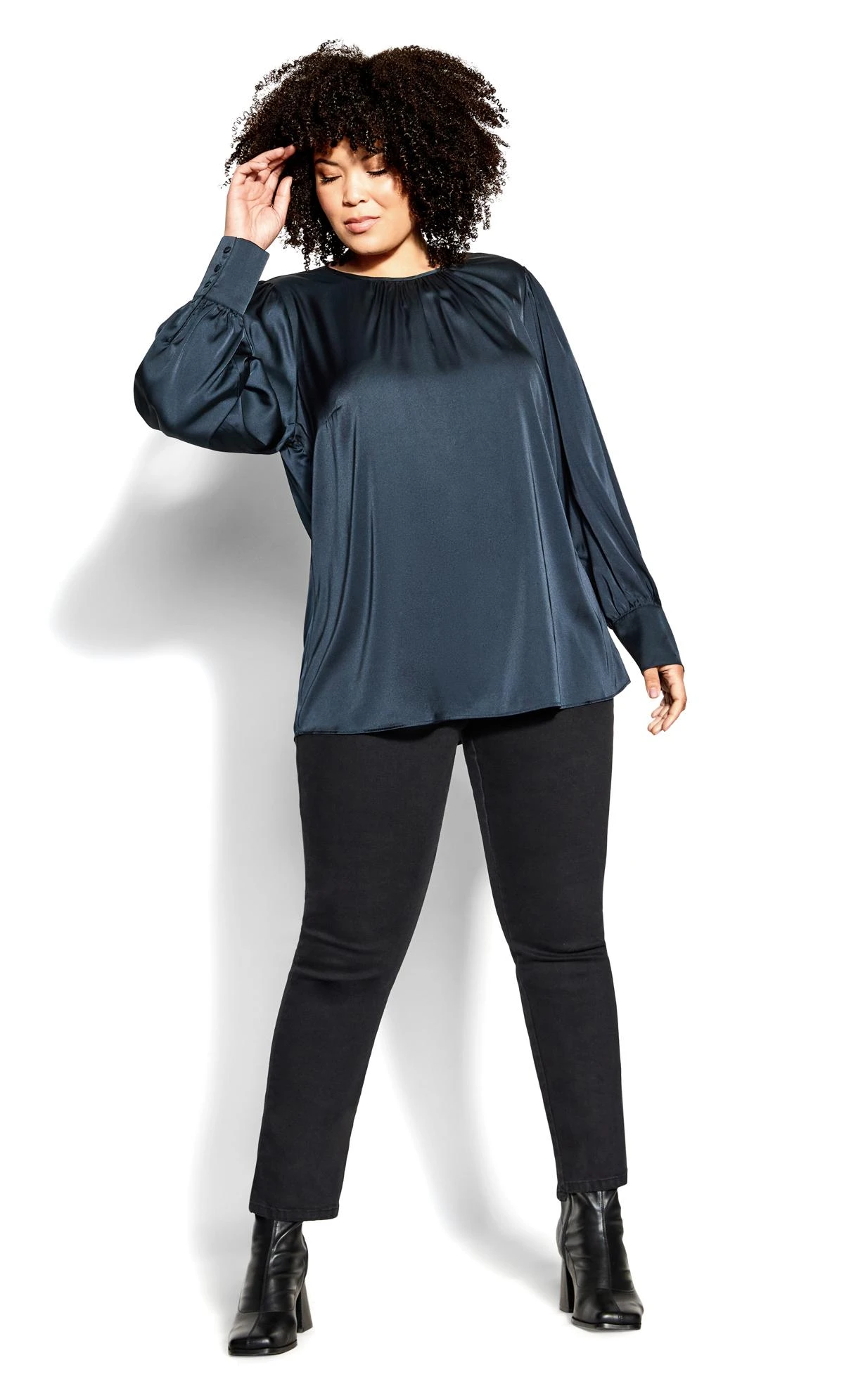 Get sleek and sophisticated in our Aaliyah Top! This blue beauty is perfect for your work wardrobe. With a high neckline, gathered detailing, puff sleeves and relaxed fit, you’re sure to make heads turn at the office!
