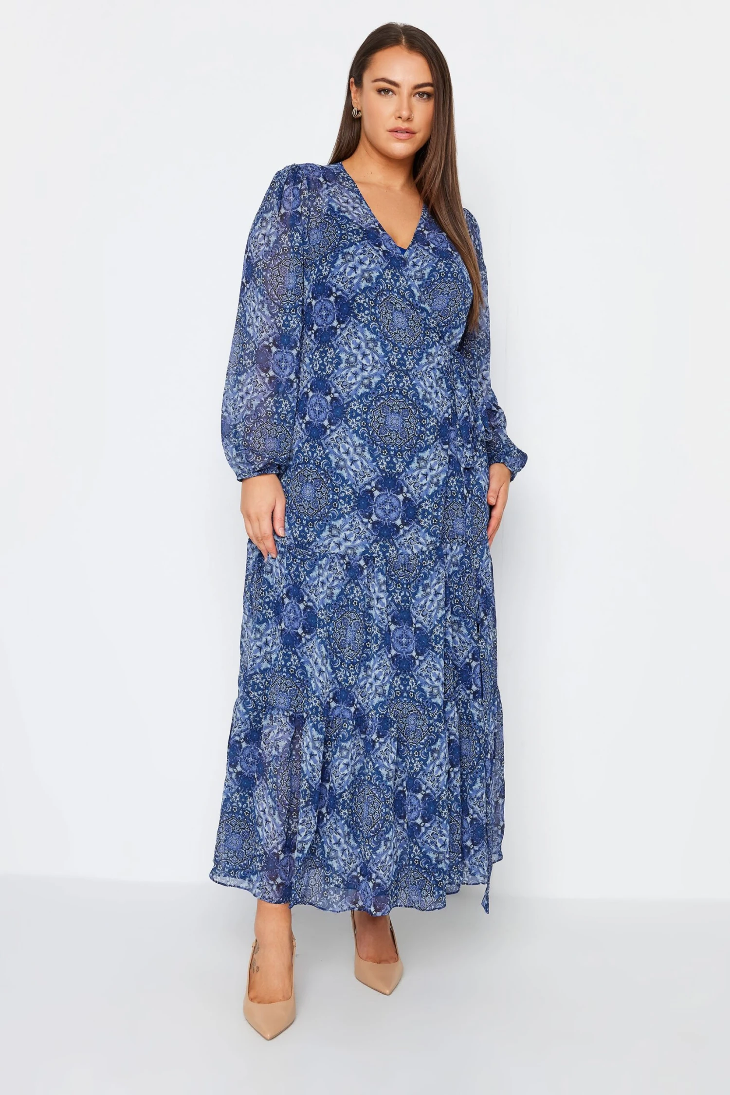 Make a statement with the City Chic Blue Tile Print Wrap Maxi Dress. This elegant dress combines a captivating tile print with a flattering wrap design, ensuring you stand out at any event. Embrace style and grace with this stunning maxi dress that’s perfect for special occasions.