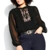 Wear a black cami under this top and pair it with high-waisted black jeans for a knockout look.