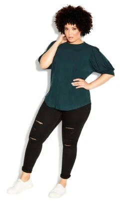 Elevate your wardrobe with City Chic’s Emerald Green Puff Sleeve T-Shirt. This t-shirt features a captivating emerald green hue, enhanced by stylish puff sleeve detailing that adds a touch of trendy flair to your ensemble. With its comfortable fit and fashionable appeal, City Chic’s Emerald Green Puff Sleeve T-Shirt offers a versatile statement suitable for various occasions.