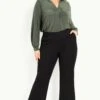 Embrace elegance with a modern twist in the City Chic Emerald Green Wide Leg Trousers. Drenched in a lush emerald hue, these trousers project sophistication with their fluid wide-leg silhouette, promising to elevate any ensemble. Whether you’re headed to the office or a chic evening out, these trousers guarantee a look that’s as captivating as it is timeless.