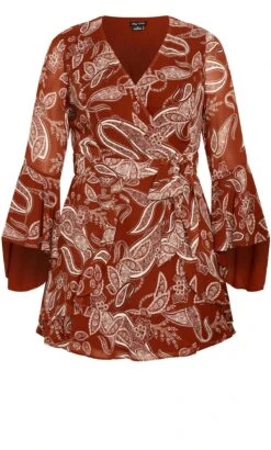 Elevate your style with the City Chic Ginger Paisley Patterned Wrap Mini Dress, a perfect blend of boho chic and modern charm. Crafted to impress, this dress features a warm ginger hue and an intricate paisley pattern, adding a touch of personality to your look. Embrace versatile fashion with this essential wrap mini dress, perfect for making a statement on various occasions.